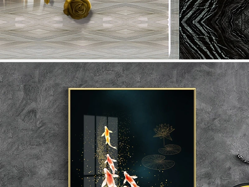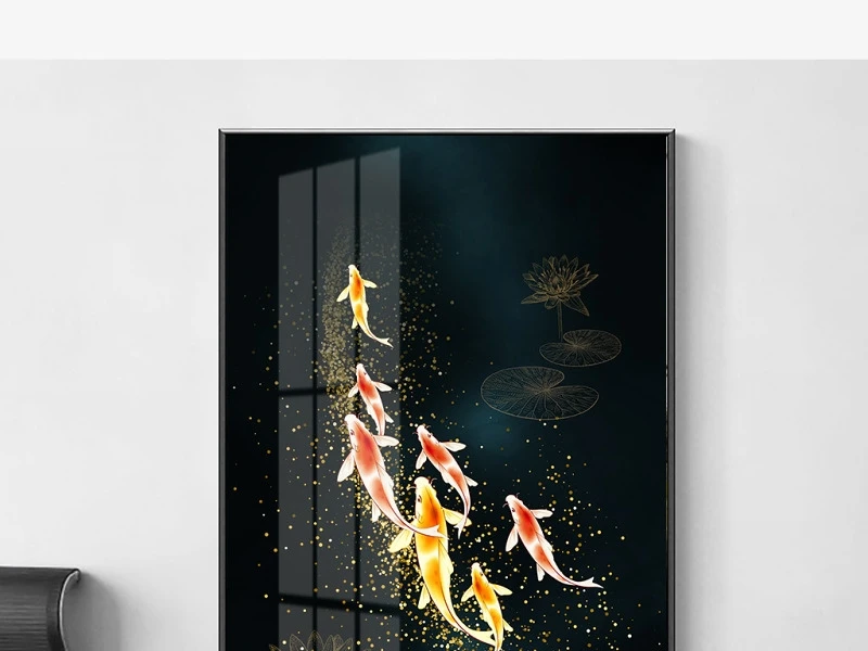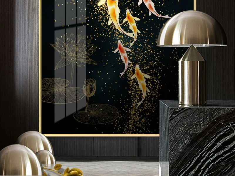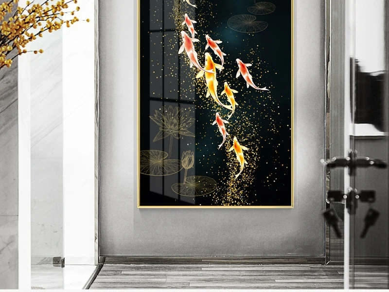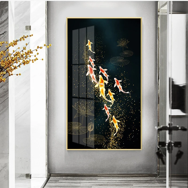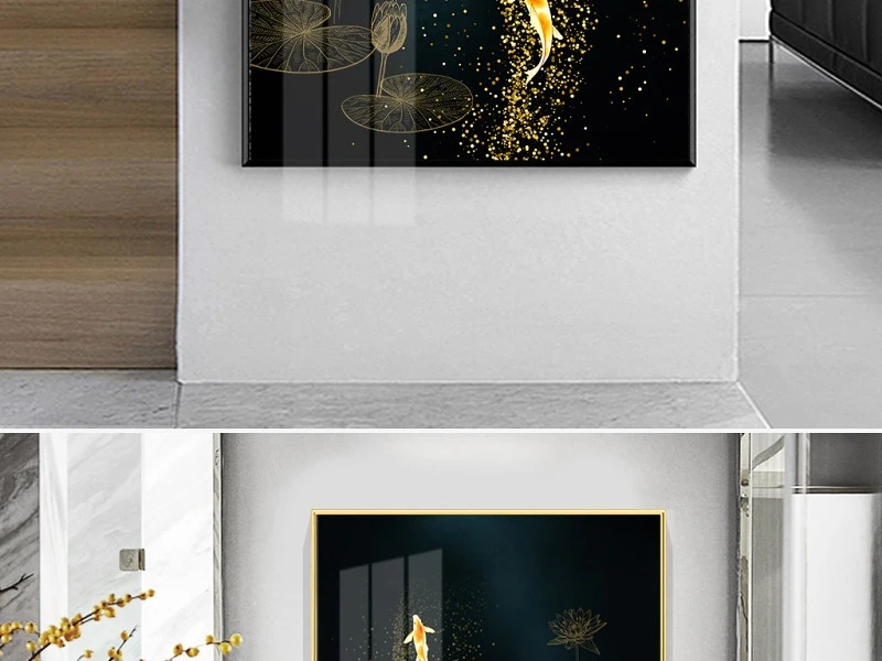 Постер на холсте с рисунком рыбы и кои, фэн-шуй, карп, лотос, пруд, золотые картины, настенное искусство для гостиной, современный домашний Декор 5-79