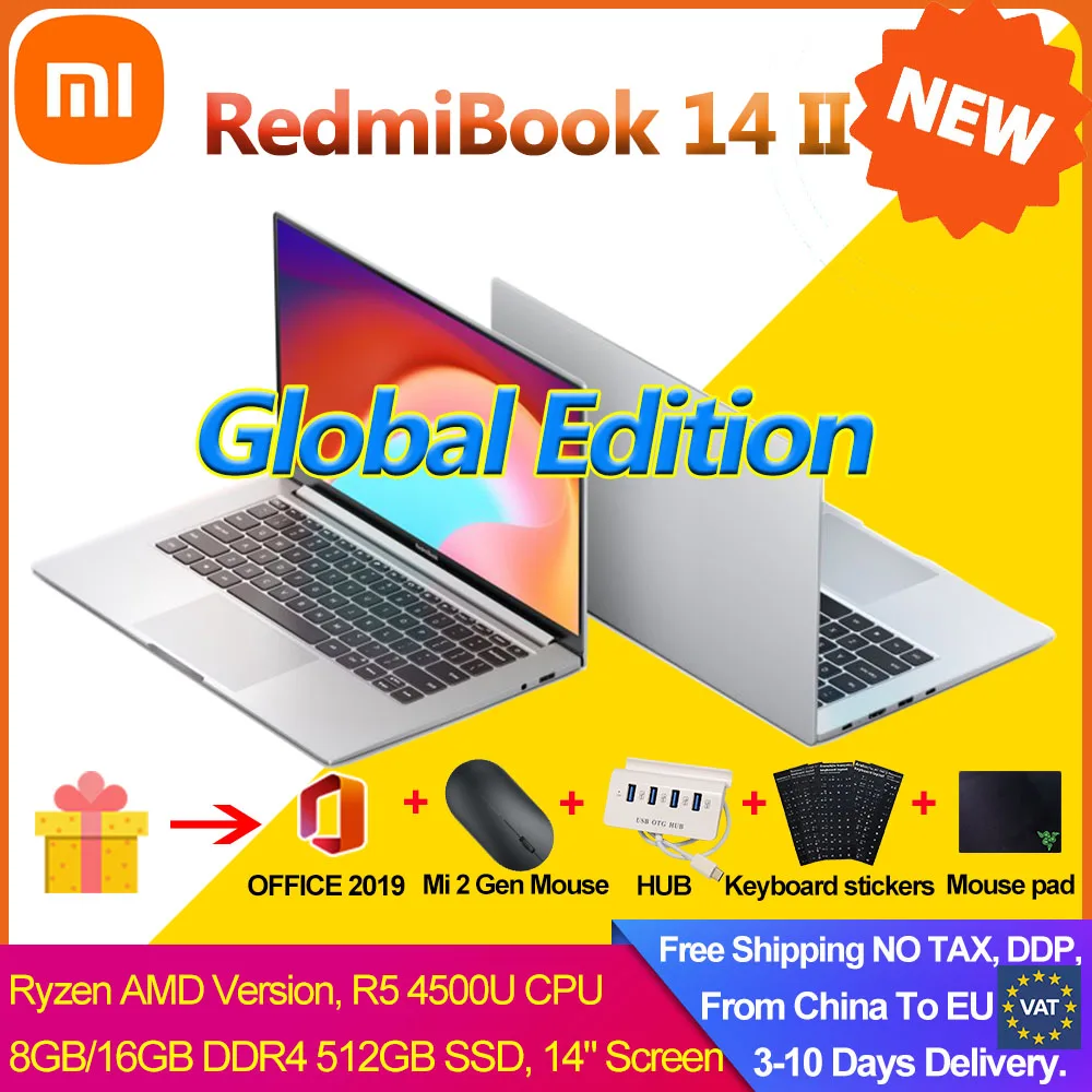 Ноутбук Xiaomi RedmiBook 14 II, AMD Ryzen Edition 5- 4500U, 8 ГБ16 ГБ, DDR4, 512 Гб SSD, 14-дюймовый полноэкранный FHD экран, сверхтонкий Металлический корпус Win10