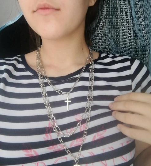 Цепочка-чокер Женская, мужская, трехслойная, из сплава, в стиле панк, монета с крестом