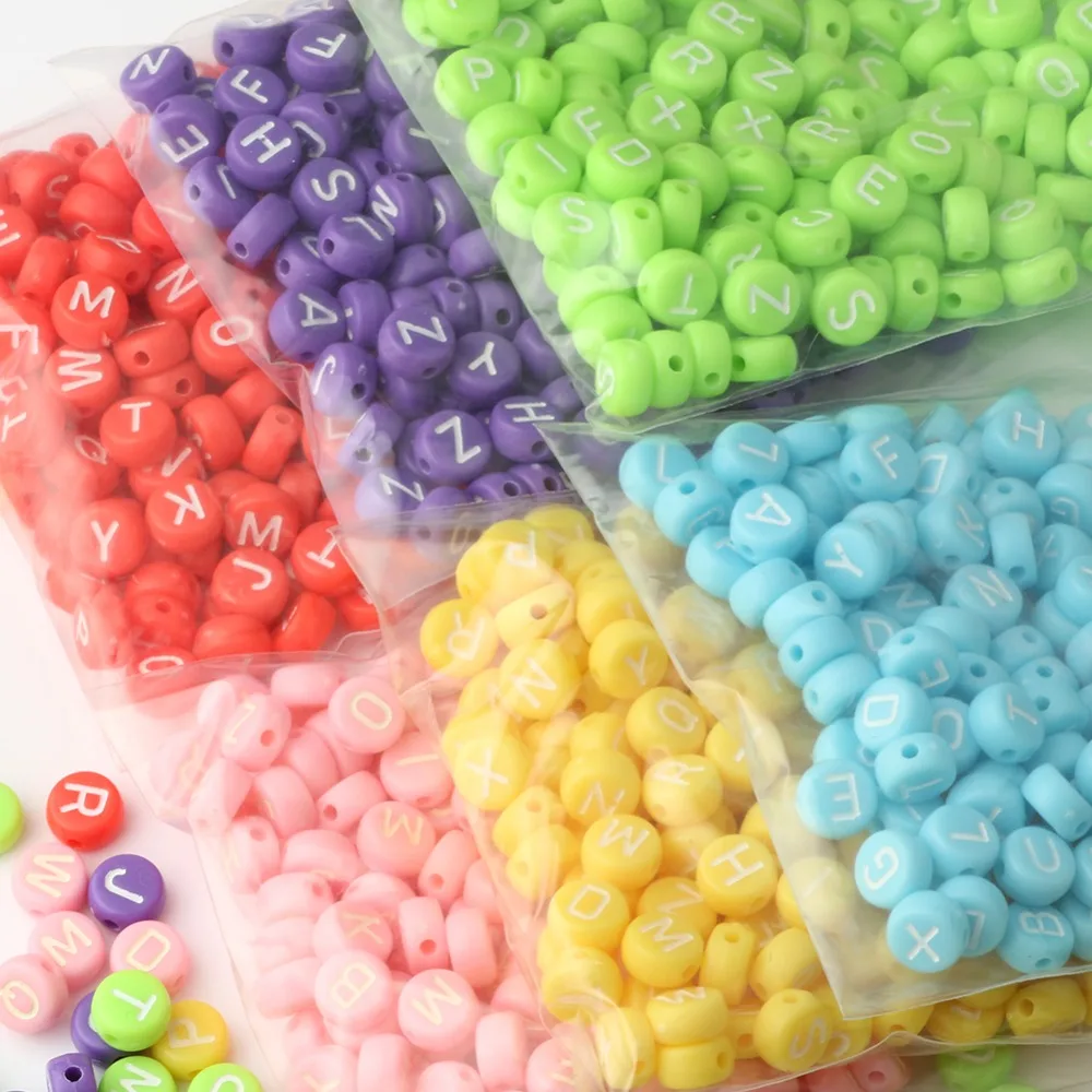 Бусины акриловые круглые, 100200300500 шт., Микс Квадратные бусины в форме букв