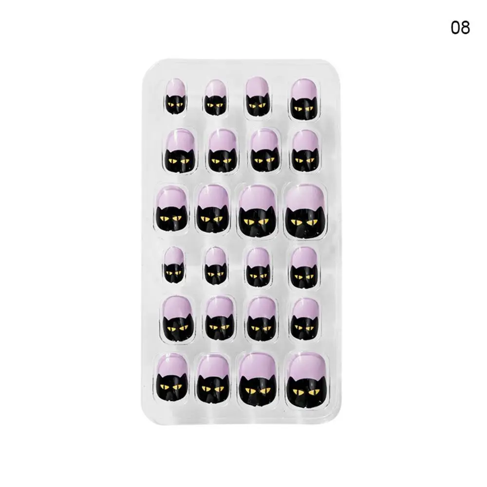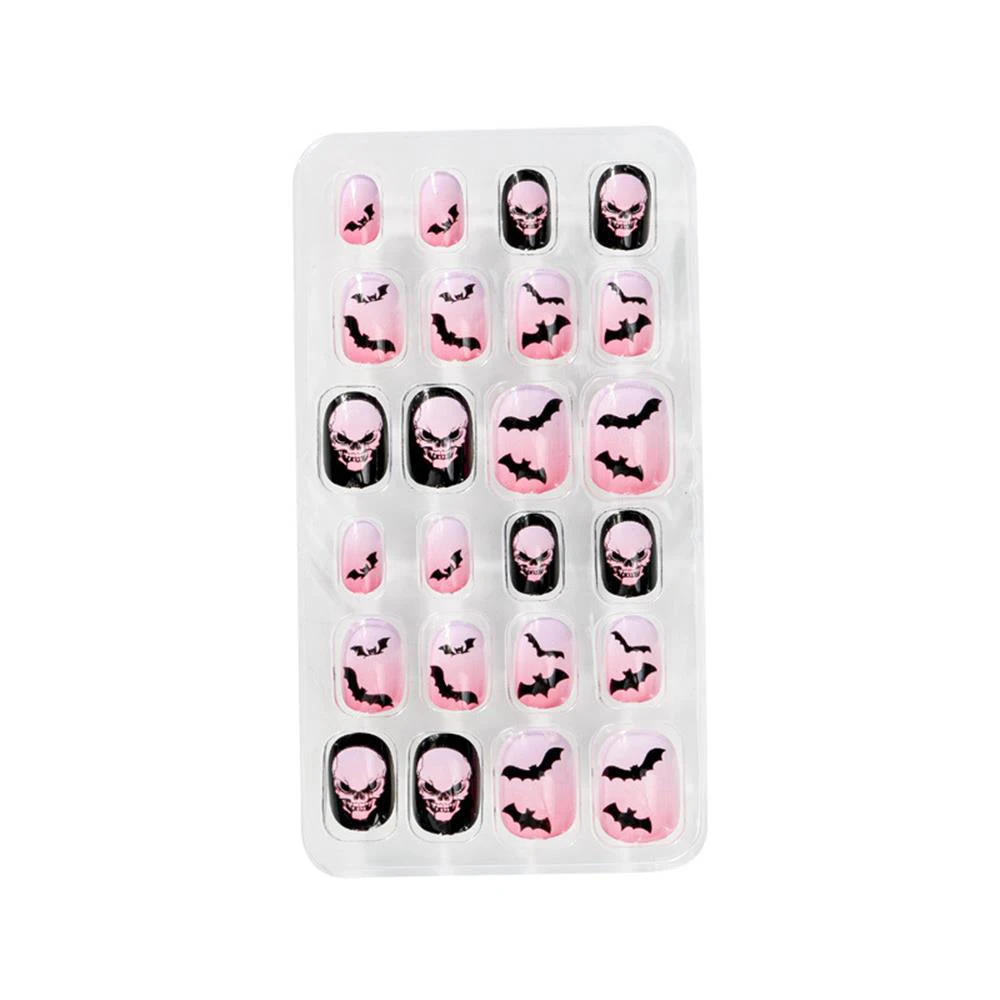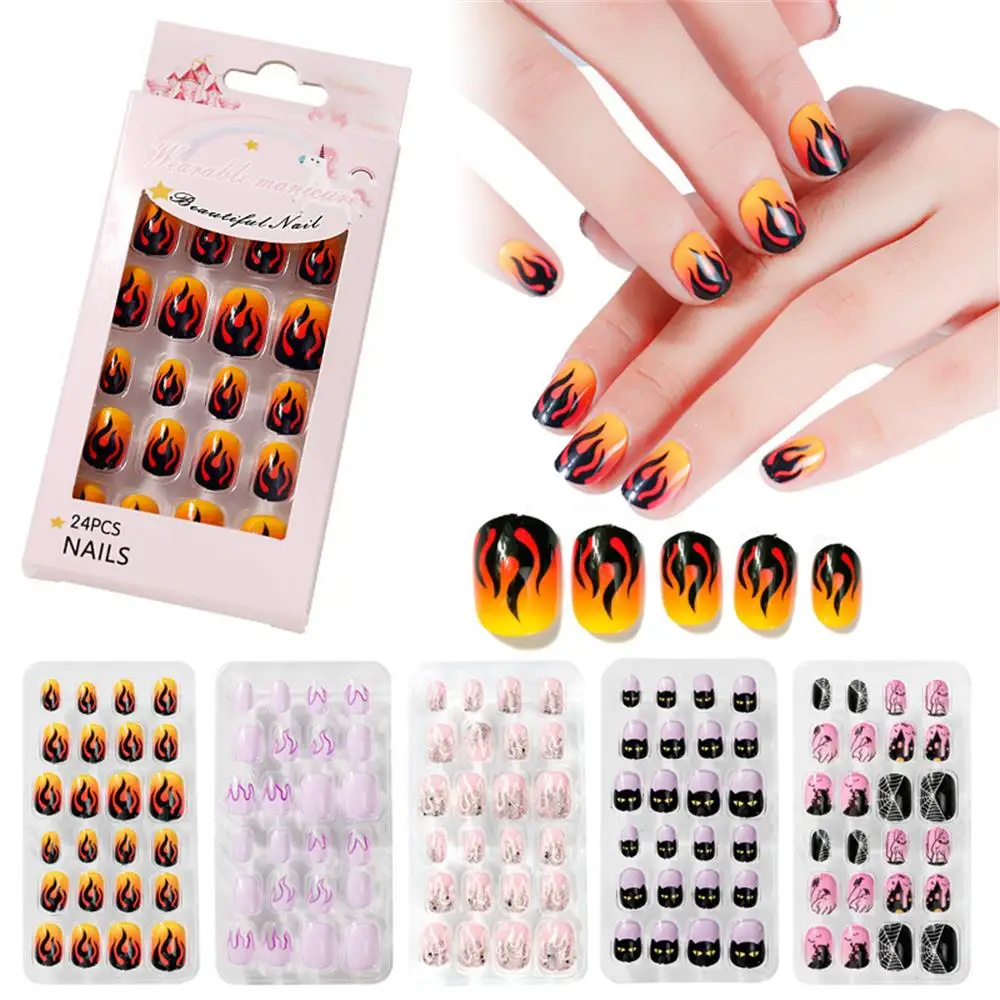 24 шт.лот накладные ногти нажмите на детей пламя полное покрытие ребенок клей самостоятельно поддельные ногти для девочек маникюр Советы Хэллоуин Вечерние