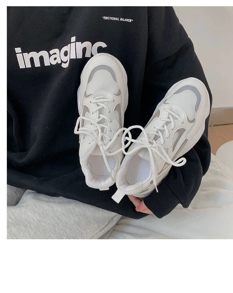 Женские массивные кроссовки, дышащая сетчатая повседневная обувь на платформе, с вулканизированной подошвой, толстая подошва, белые, на осень