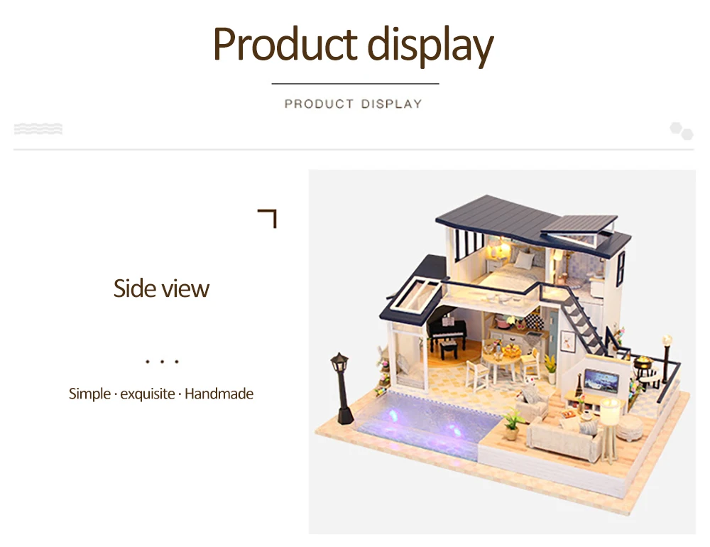 Использование продукта:1. Развивайте терпение и заботу о детях;2. Выразите мои искренние благословения родным;3. Соберите для себя;4. Подарите другу;5. Удивите своего любимого.Все товары такие же, как на изображении.Бесплатный подарок: купите 1 Кукольный домик, получите 1 Набор инструментов для сборки1. Они поставляются с кусочками, их нужно собрать самостоятельно.2. Включая всю отображаемую мебель3. Стиль: вилла в европейском стиле4. Размер готового продукта: 33*25*22 см5. Материал: дерево, ткань, бумага, смола, пластик, материал6. Руководство: с инструкциейПримечание:1. Не включает клей/аккумуляторы.2. Возраст: подходит для детей старше 8 лет3. Дети до 3 лет должны сопровождать взрослыхМы предоставляем профессиональное обслуживание дропшоппинга. Мы обещаем, что в посылка не включены счета-фактуры, рекламные материалы, визитки. Кроме того, мы обеспечим полное отслеживание грузов для обеспечения безопасного прибытия груза.