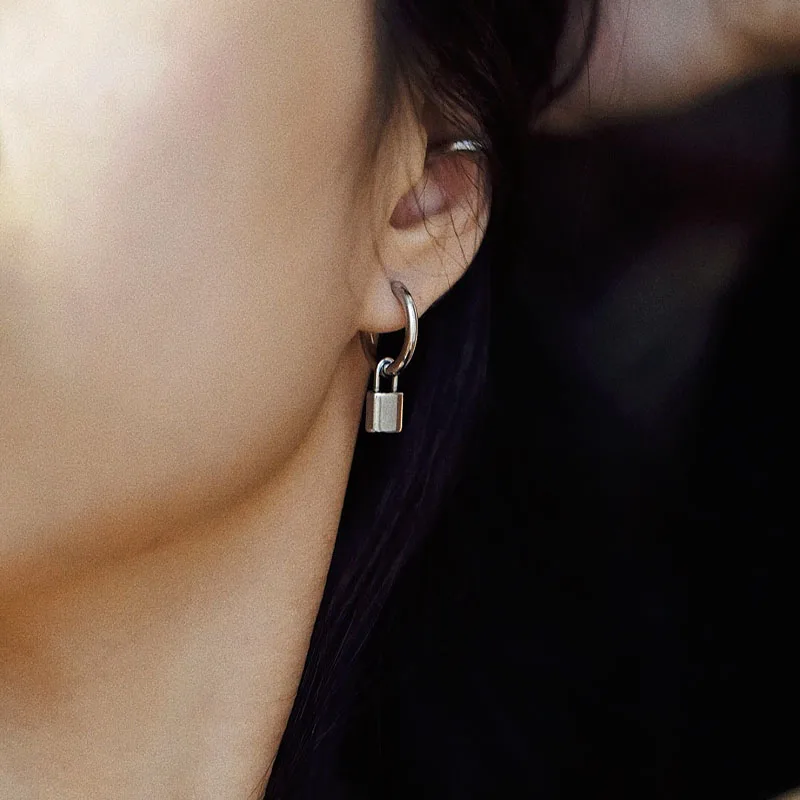 Серьги-кольца в форме замка для мужчин и женщин, металлические и Серебристые крутые ювелирные украшения в стиле хип-хоп с геометрическим дизайном, вечерняя бижутерия