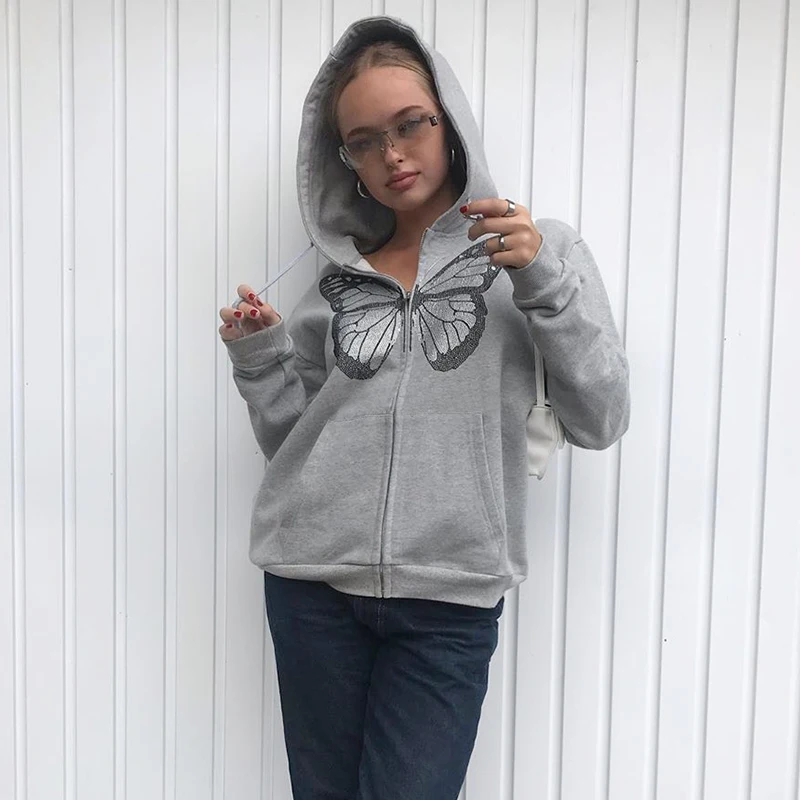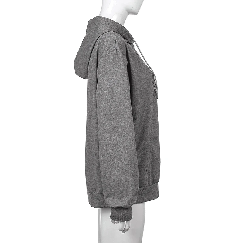 Толстовка женская оверсайз, на молнии, с длинным рукавом, в стиле 90-х, 2021