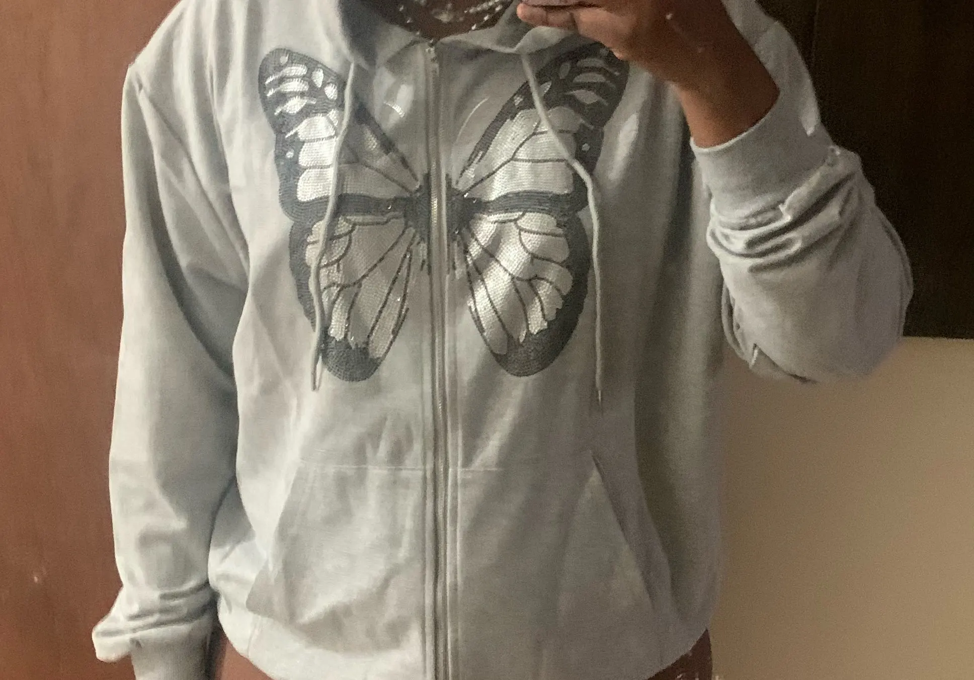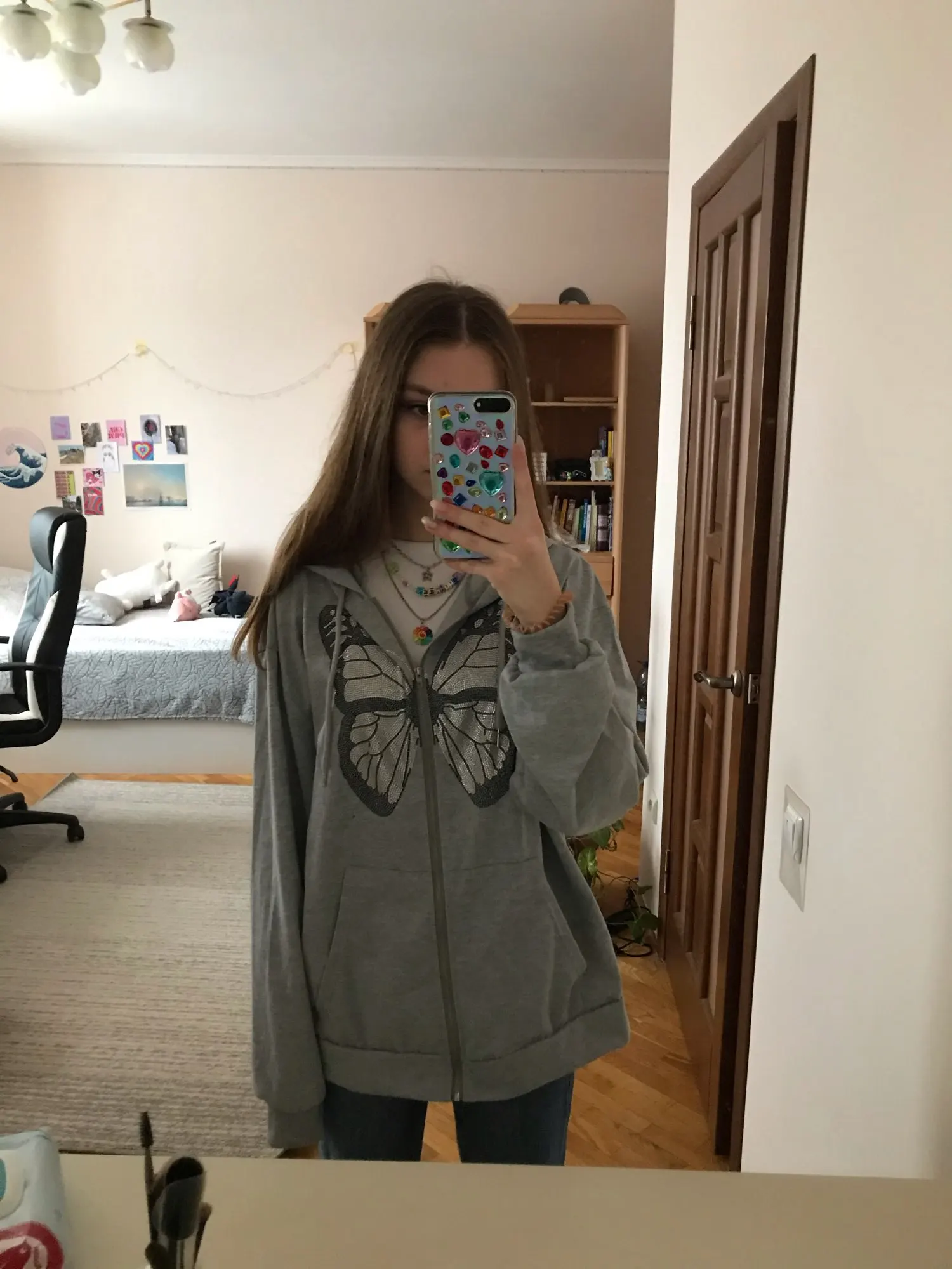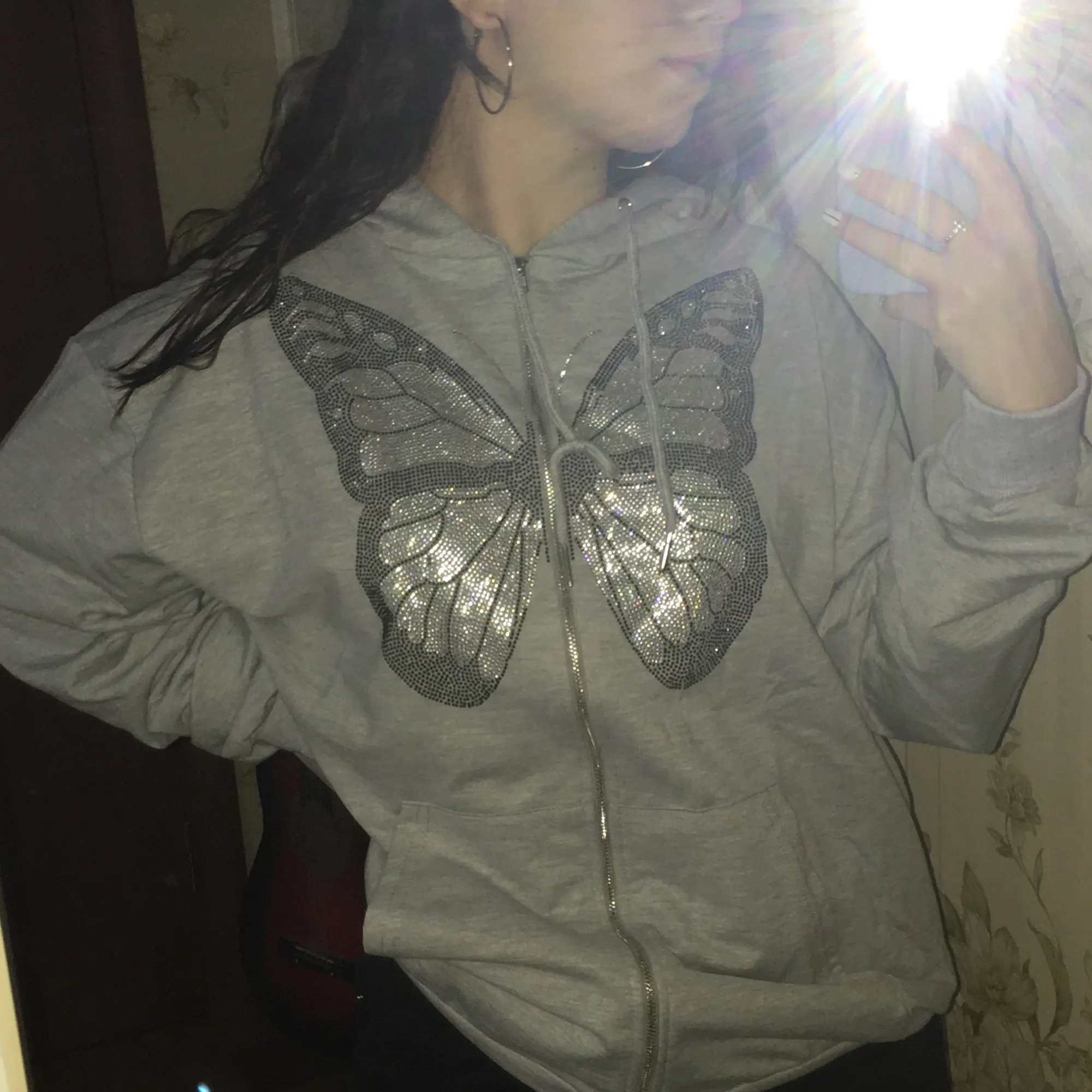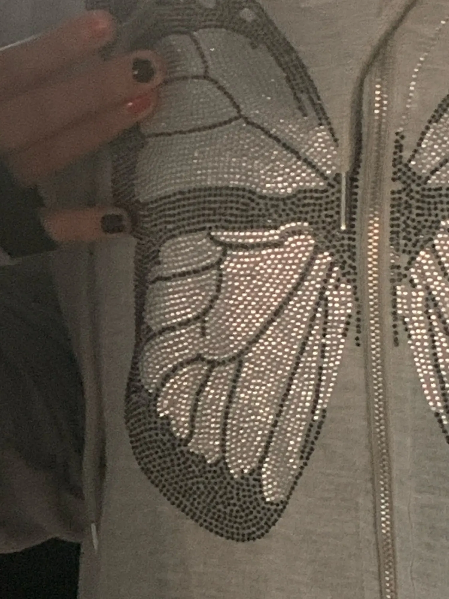 Свитер немного тонкий, но хорошего качества, и вещь с бабочкой классная