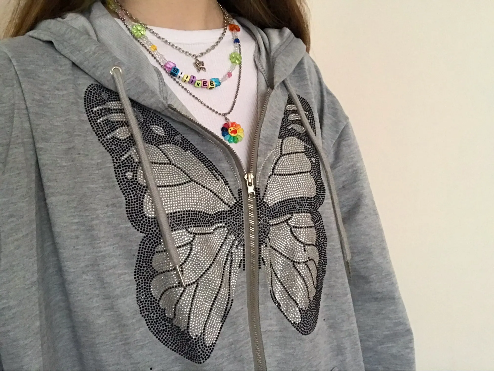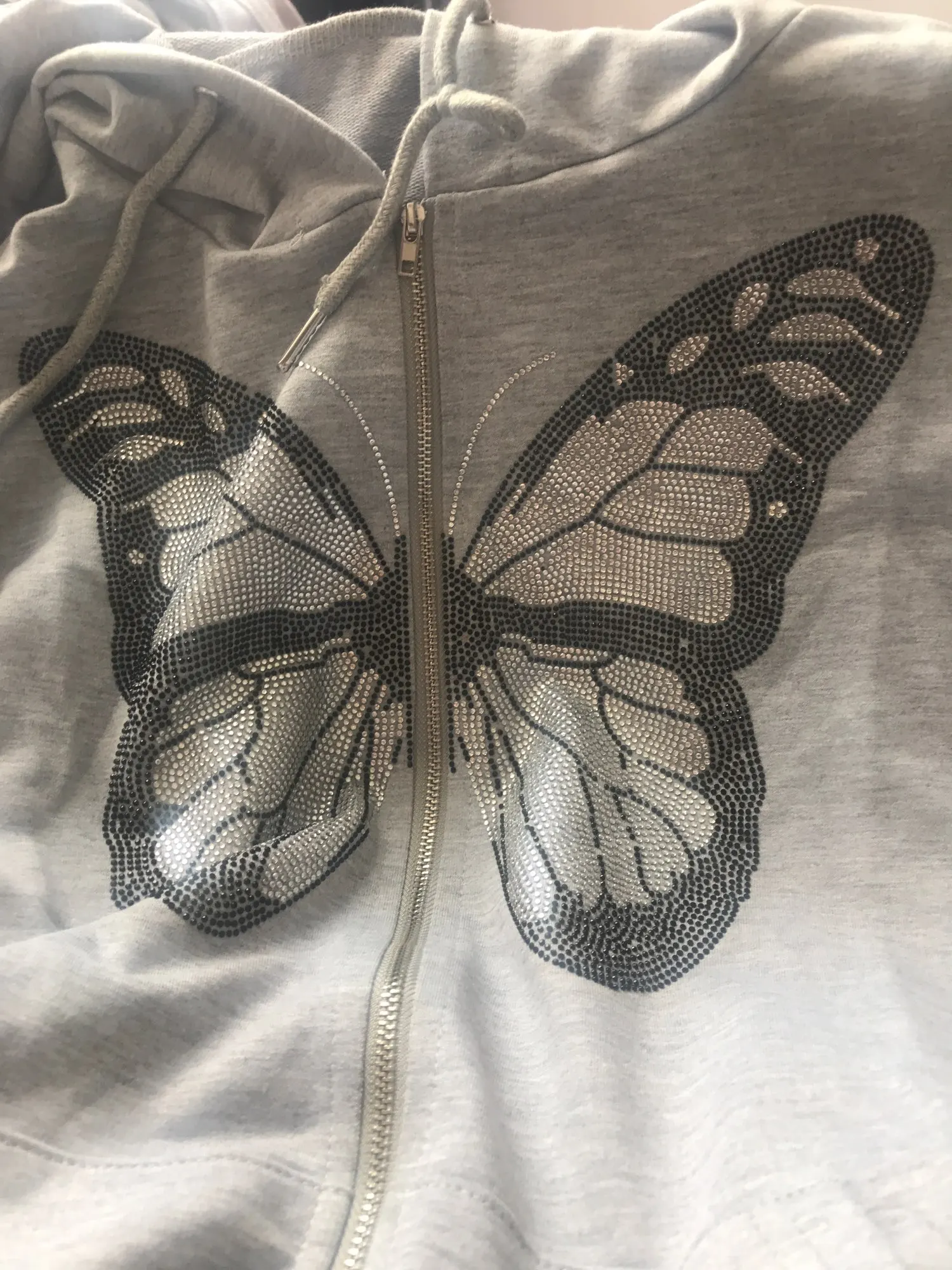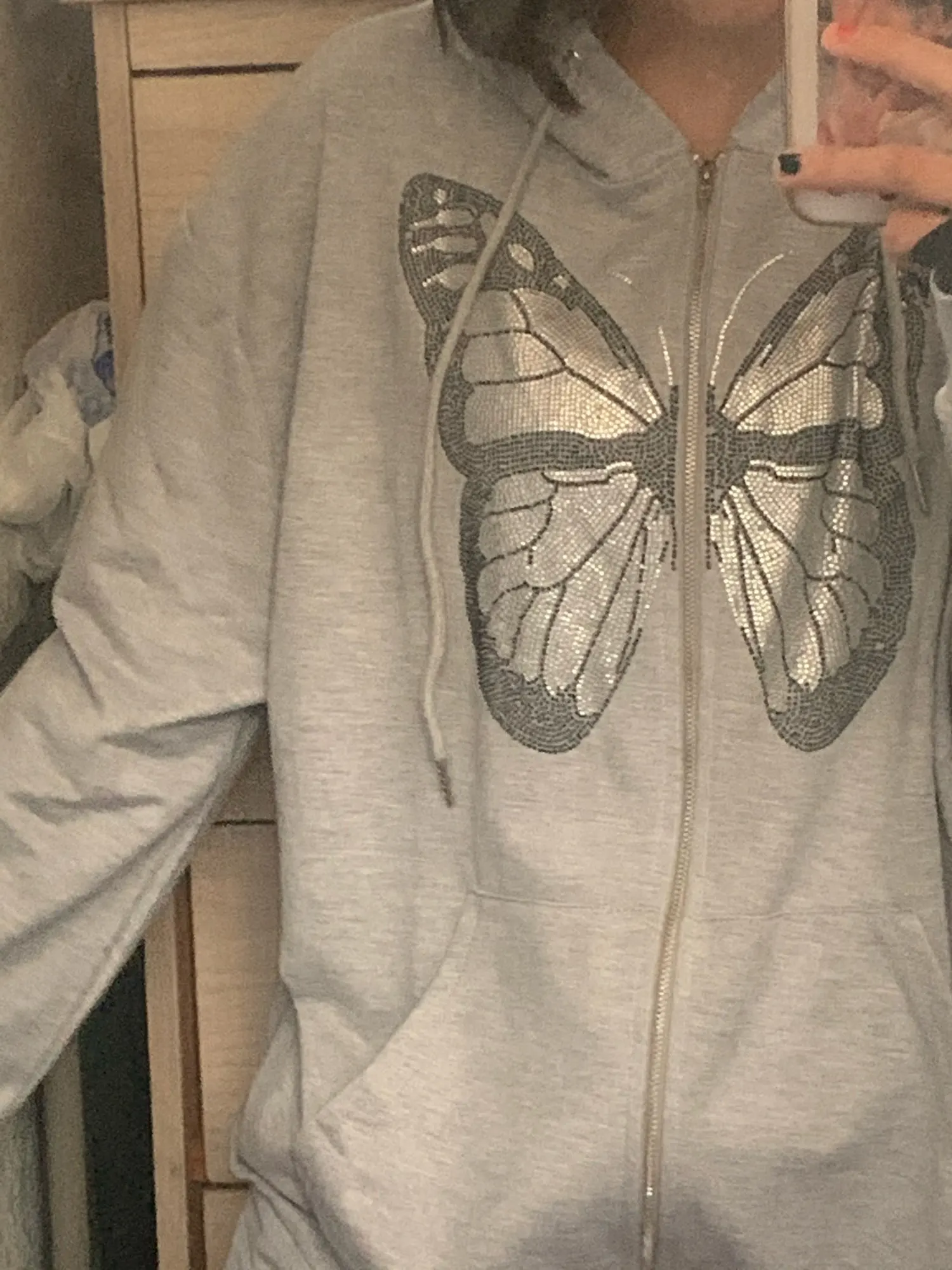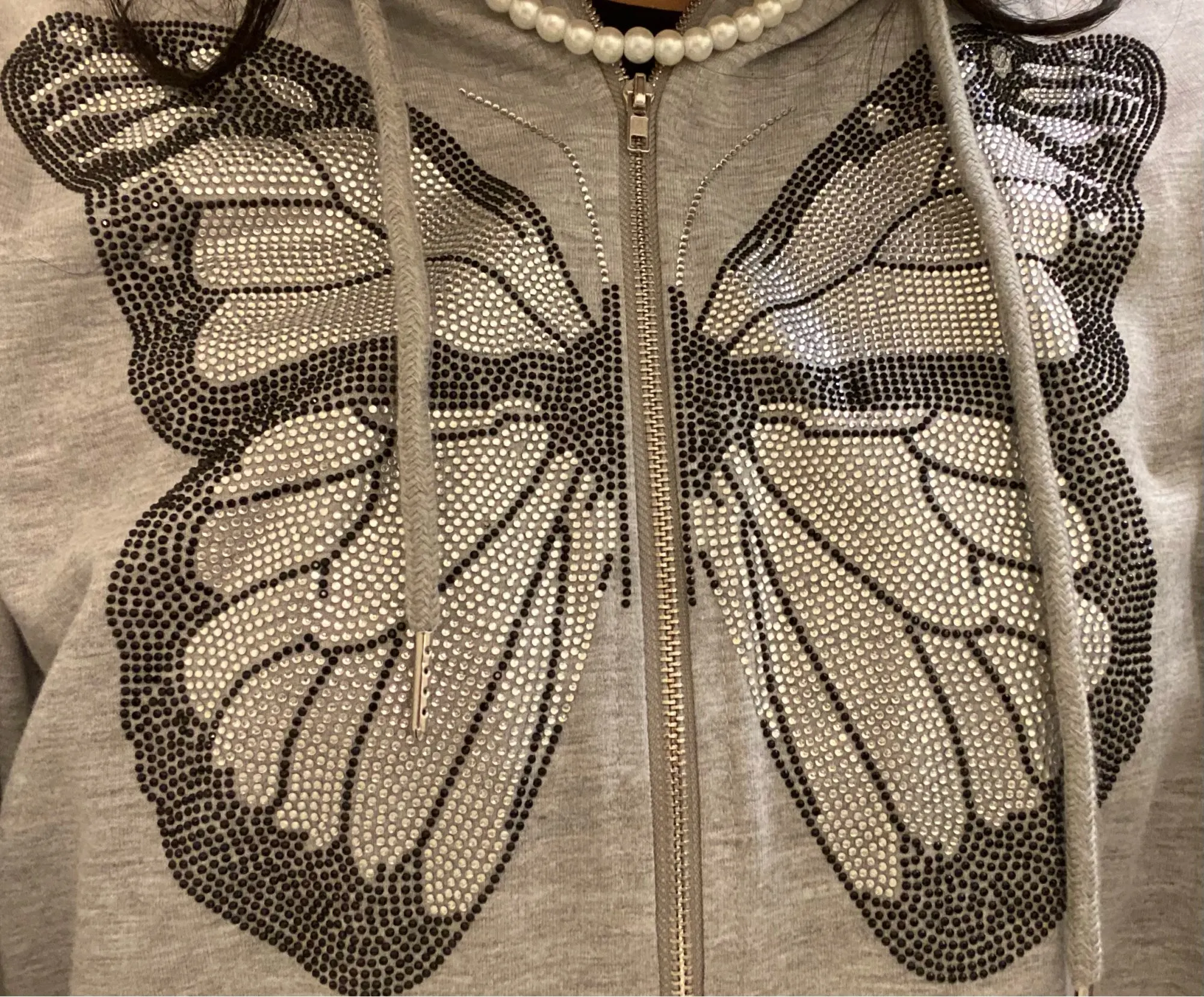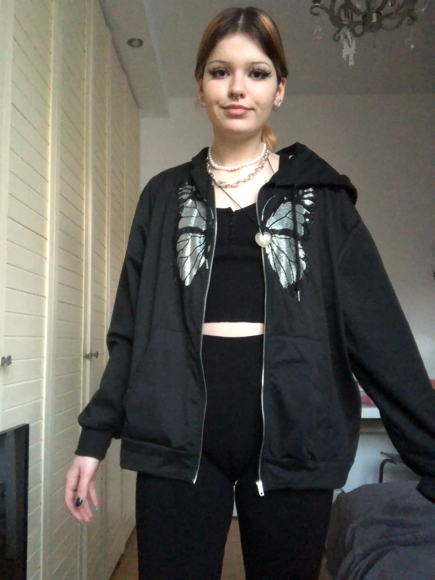 Очень тонкая куртка, хорошая, когда она не слишком популярная. Куртка большого размера. Действительно мило, и я люблю дизайн бабочки