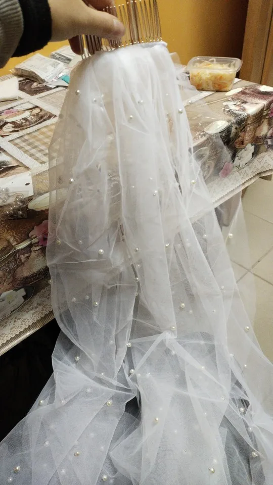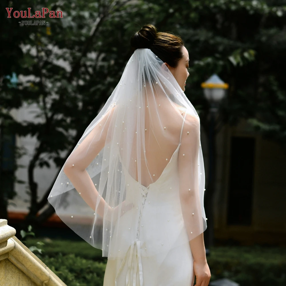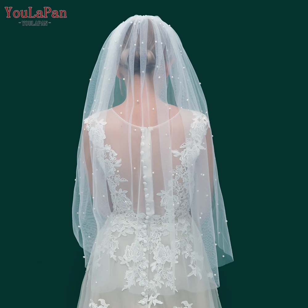 Роскошная Фата YouLaPan V05 для невесты, свадебная фата с жемчугом и гребнем для волос, Длинная свадебная фата для венчания