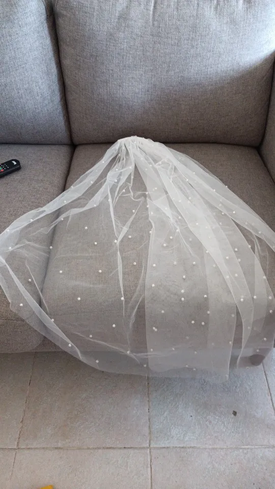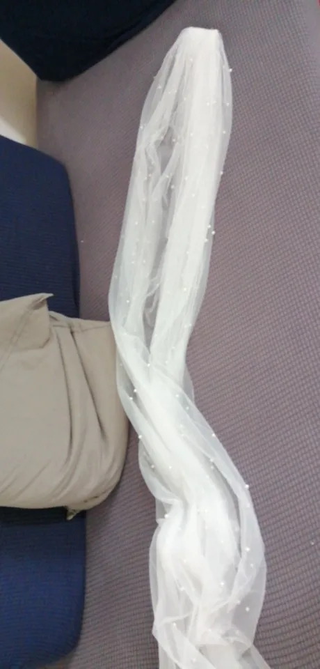 шикарная фата!!! цвет не белый, а именно слоновая кость, все бусинки на месте, ничего не отвалилось в доставке. пришла даже не сильно мятая, как я ожидала, отвисится. продавцу спасибо за оперативность и вежливость!