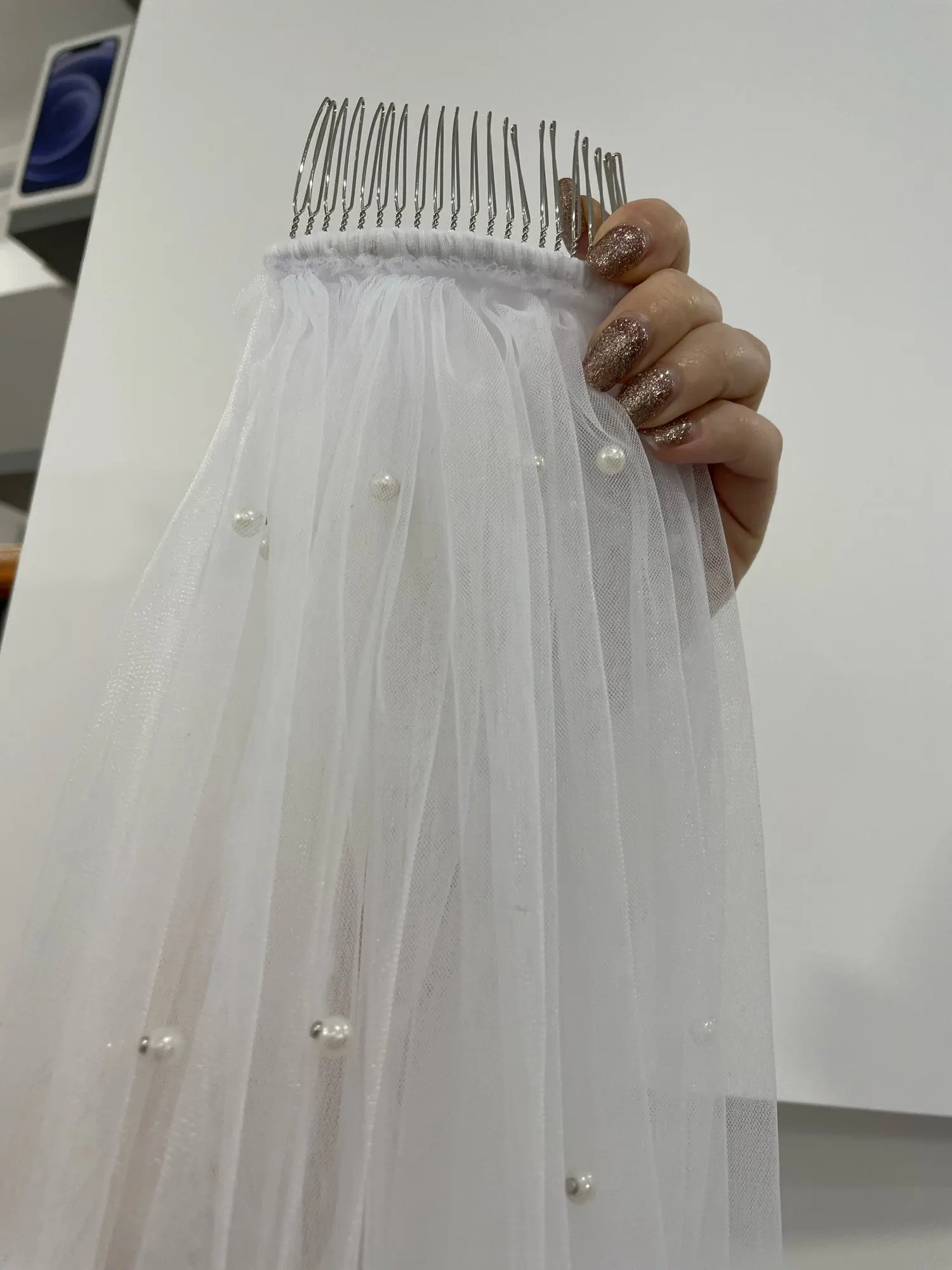 Очень лёгкая фата (всего 100 г) с классными жемчужными бусинами