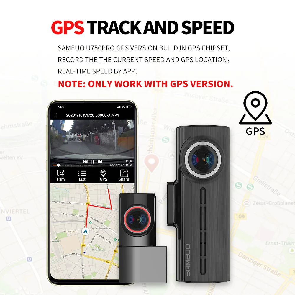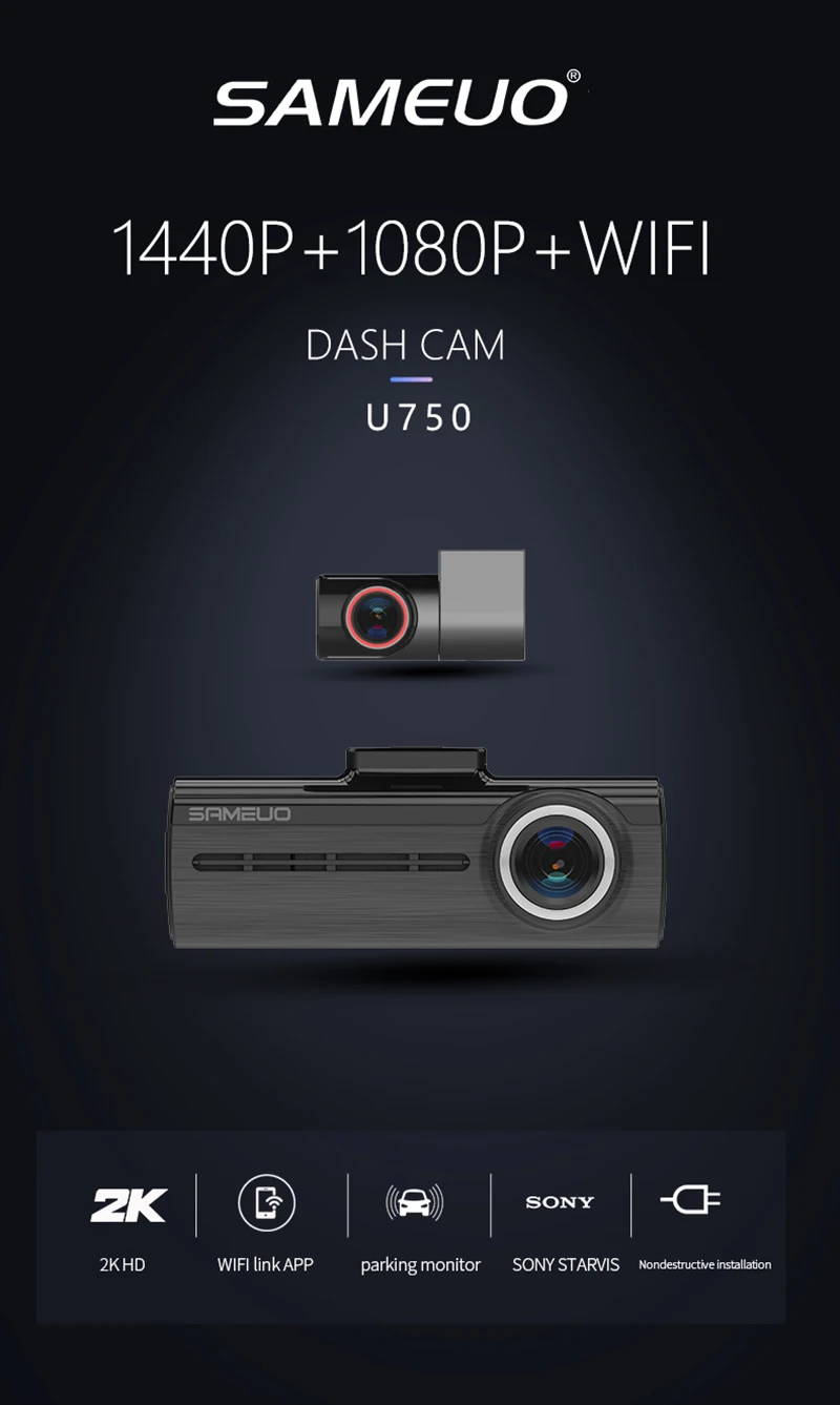 Видеорегистратор Sameuo U750, Скрытая камера с Wi-Fi и голосовой записью, Fhd 1440P, передняя Автомобильная камера с Wi-Fi, 24-часовой парковочный монитор, ночное видение