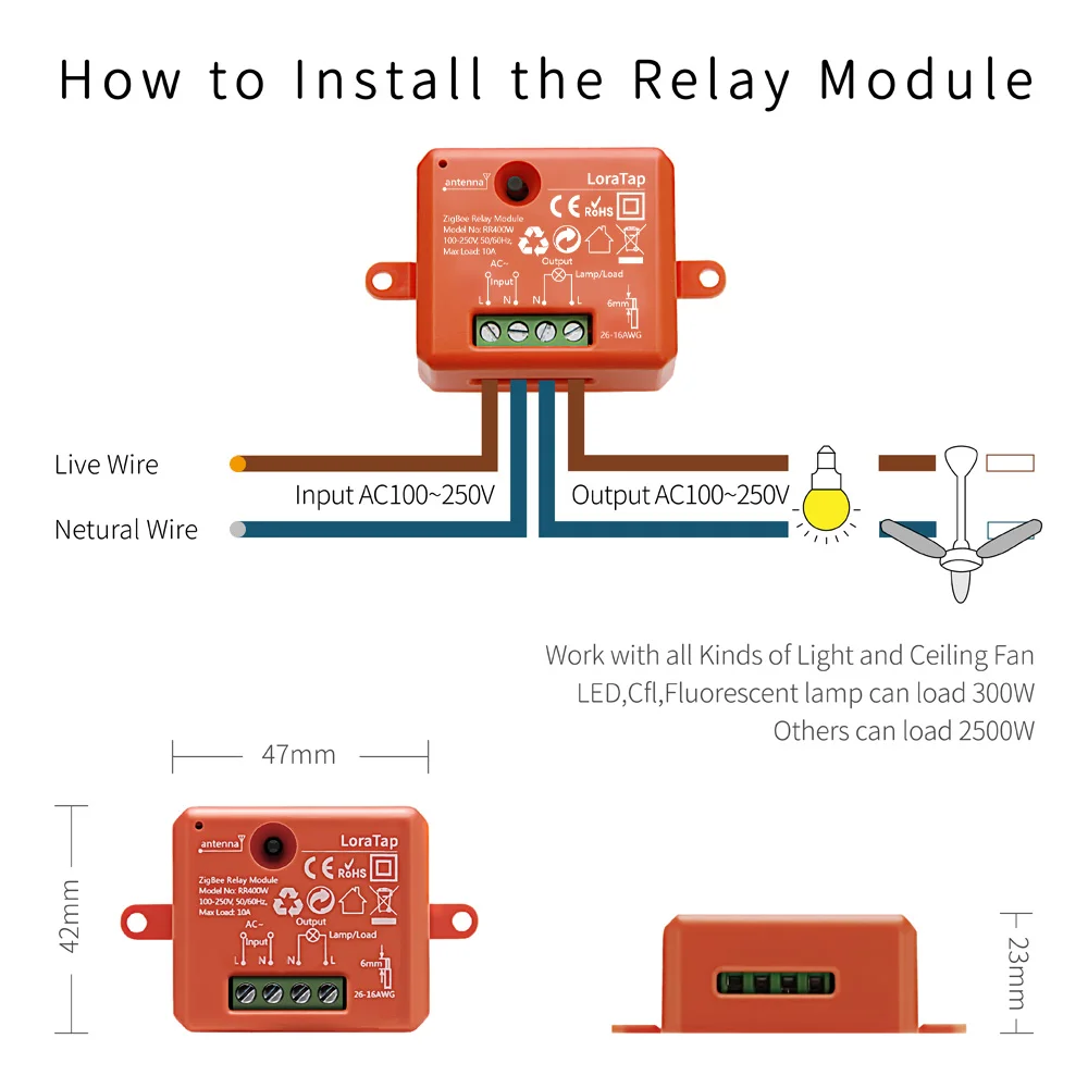 Очень компактное реле, в комплекте есть провода и наконечники. Монтируется очень быстро. с Zigbee2mqtt работает без проблем. Единственный минус – громко щёлкает.