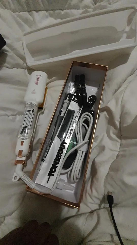 На самом деле это прекрасно! Он сглаживает волосы, не повреждая их, он достигает 235 градусов! Поставляется с перчаткой, чтобы не сжечь стержни маленькой расческой и пипеткой, чтобы положить воду. Короче говоря, все это, чтобы сказать, что я рекомендую, это стоит цены
