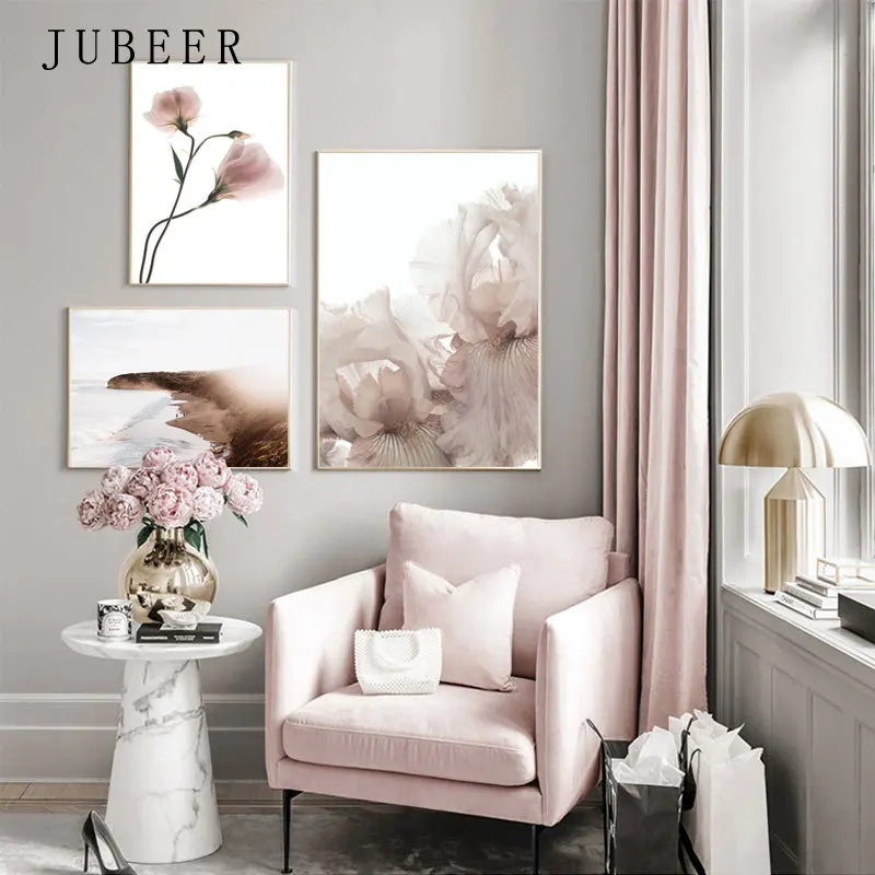 Настенные постеры в скандинавском стиле с цветами, Розовые настенны...