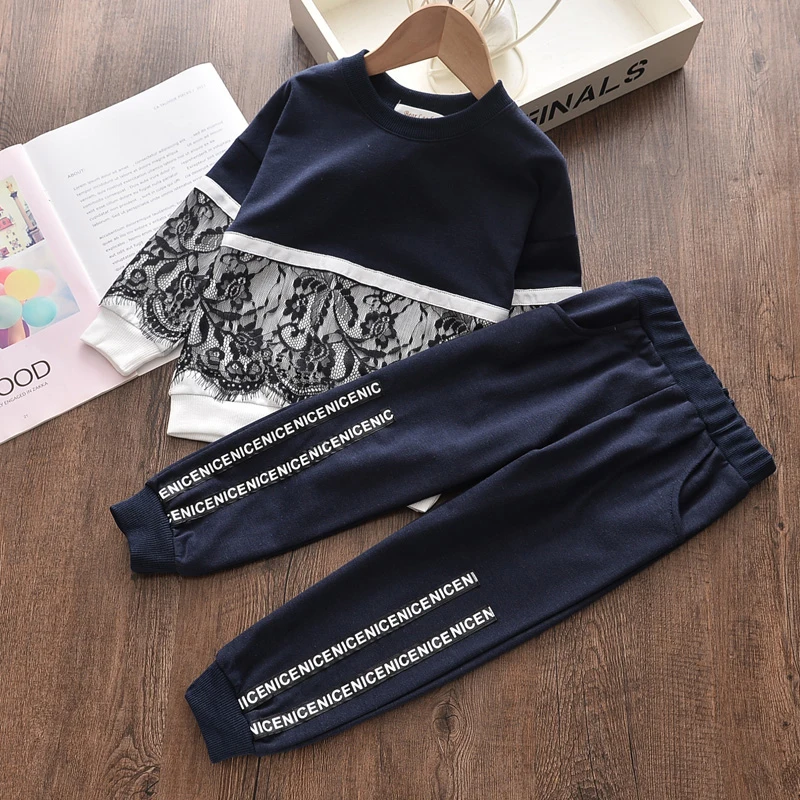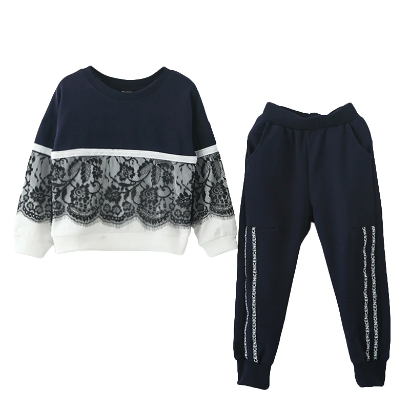 Детские комплекты одежды, 2 шт., кружевной свитер, костюм, хлопковая одежда для маленьких девочек, новинка для мальчиков и девочек на осень и весну