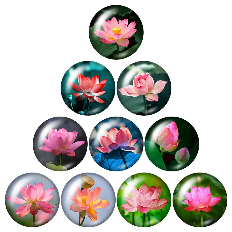 Lotus Йога религия сглаза Богемские 18 мм кнопки 10 шт Смешанные Круглые фото стекло кабошон стиль для кнопки ювелирные изделия