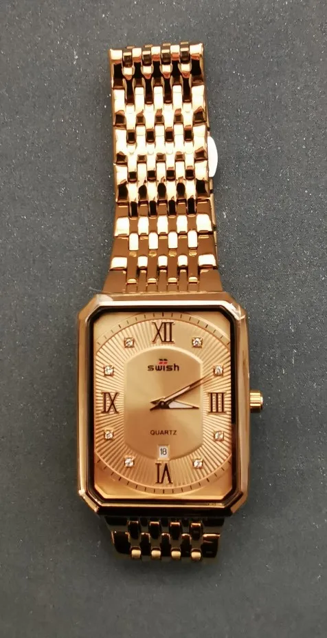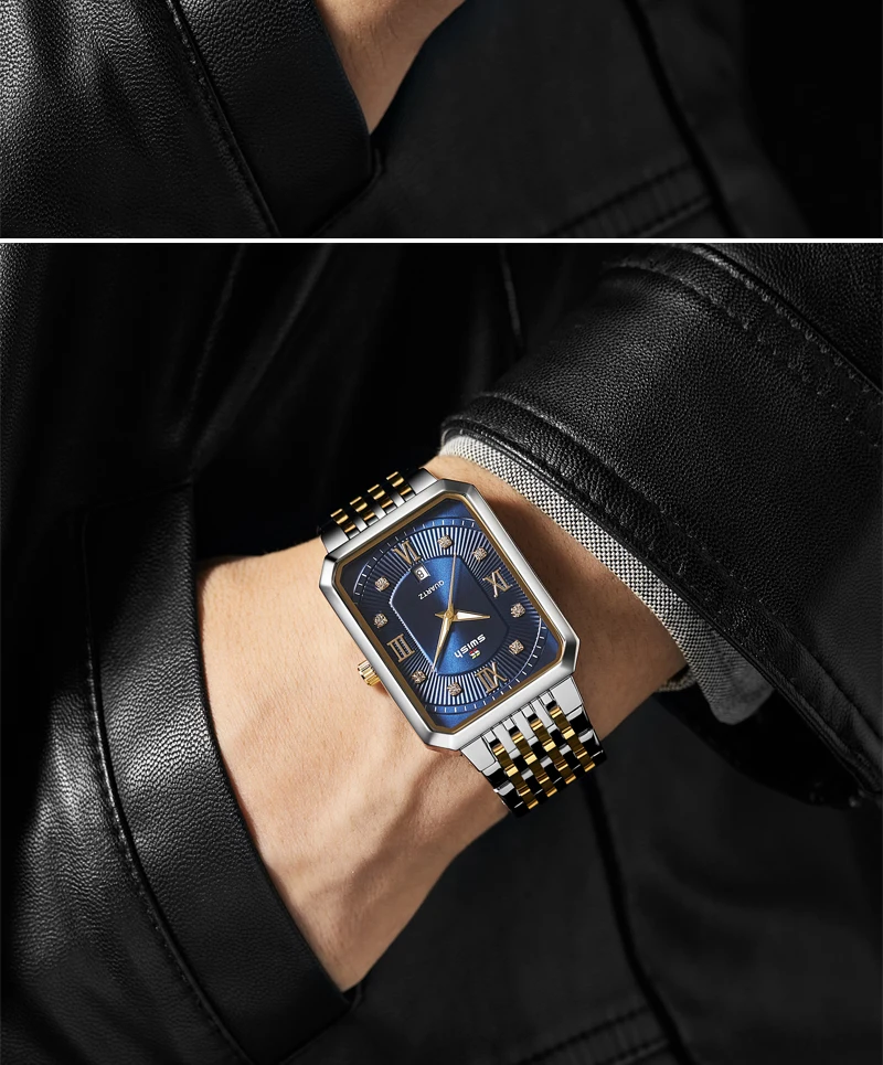 Часы наручные SWISH Мужские кварцевые, брендовые Роскошные креативные водонепроницаемые спортивные прямоугольные золотистые