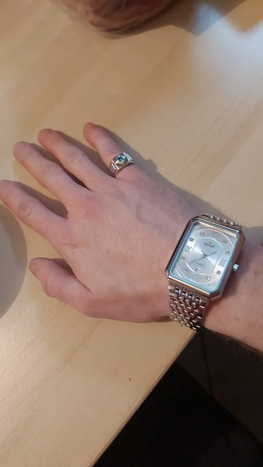 Заказ 20.01.21, получение в Муроме 10.02.21. Быстро. Товаром доволен. Действительно красивые часы Одна проблема - мне браслет оказался мал. Охват запястья у меня 22 см. Браслет застегивается с трудом. Проверил по наружному обводу - там 24 - 24,5 см. Но это с учетом толщины браслета и часов. Не хватает буквально пары звеньев браслета. А он, к сожалению, не регулируется. Так что эта система на среднюю руку, а не на такую как у меня. Мужики, учитывайте это. Подойдет тому, у кого запястье около 19-20 см. Но ничего - подарю родственнику. В качестве подарка они очень даже достойные