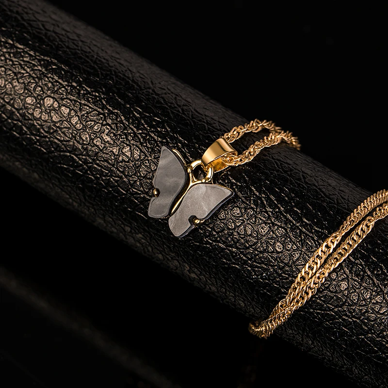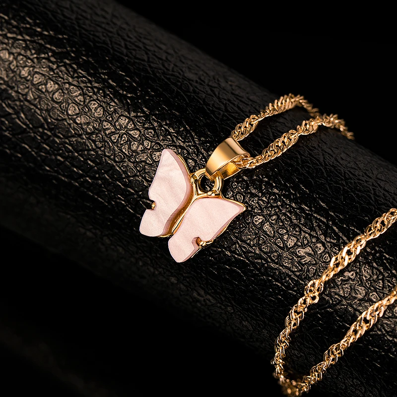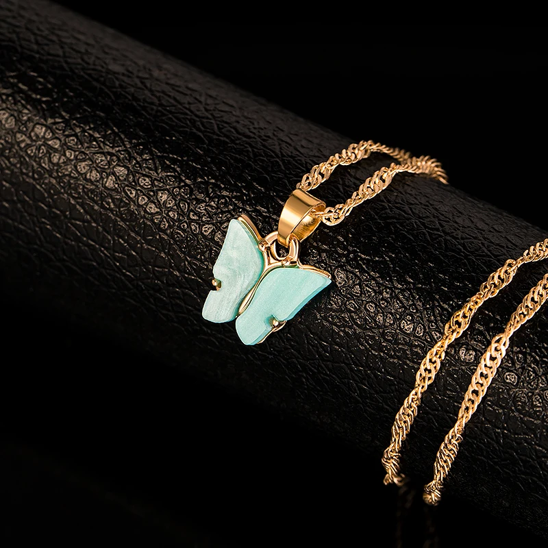 Богемные ожерелья-бабочки для женщин, конфетный цвет, акриловая подвеска-бабочка, ожерелье золотого и серебряного цвета, колье, ювелирные изделия