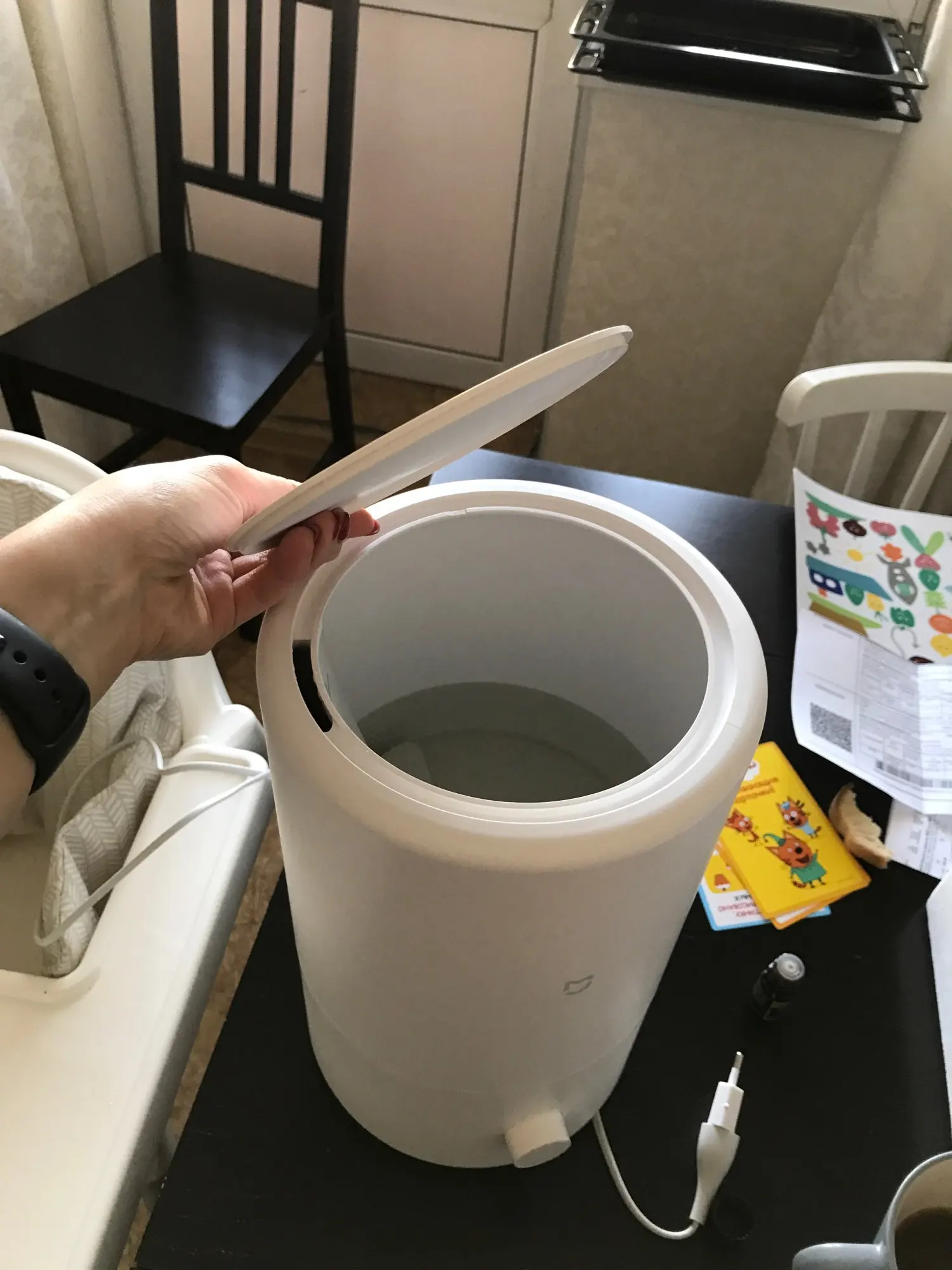 Отличный увлажнитель. Пришёл за 6 дней до Екатеринбурга, в почтомат Пятёрочки. Все работает прекрасно. Только не поняла куда капать аромамасло и вообще можно ли его использовать. Очень хорошо увлажняет комнату