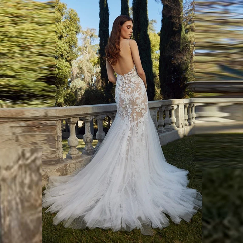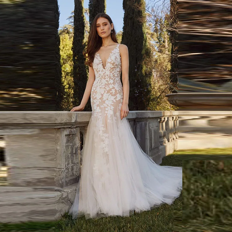 Распродажа очаровательные кружевные свадебные платья с открытой спиной без рукавов Русалка с глубоким V-образным вырезом Свадебные платья для невесты с аппликацией 2020