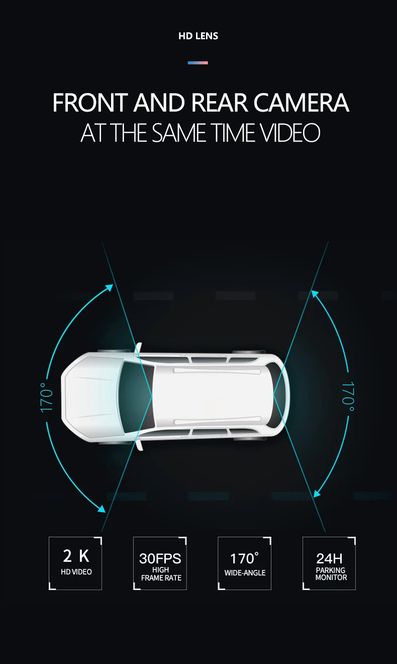 Видеорегистратор Sameuo U750, автомобильная камера с двумя камерами спереди и сзади, с Wi-Fi, Fhd 1080p, 24 часовым мониторингом упаковки, голосовым регистратором