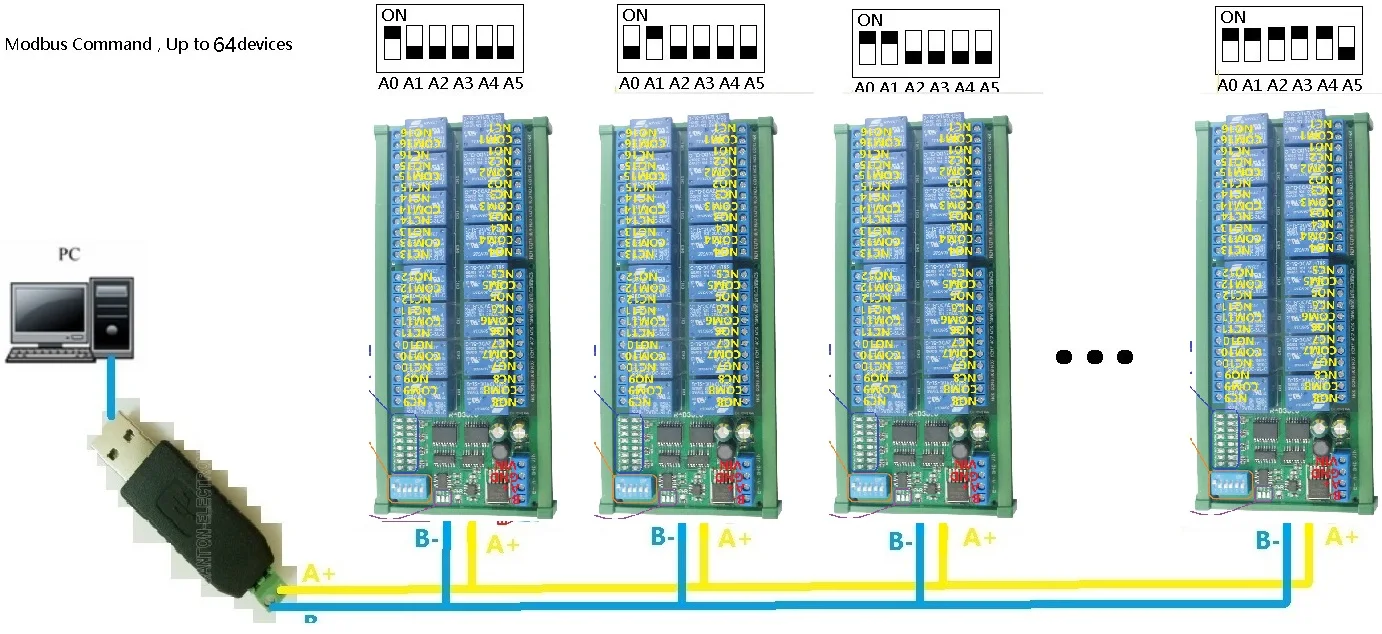 Режим команды MODBUS RTU (HEX), вы можете управлять различными способами: последовательное управление гипер-терминалом (необходимо вручную добавить CRC), управление программным обеспечением Modbus (программное обеспечение автоматически добавляет CRC), управление процессом PLC или MCU