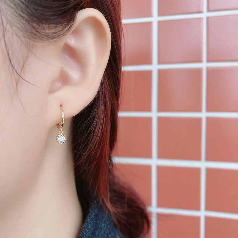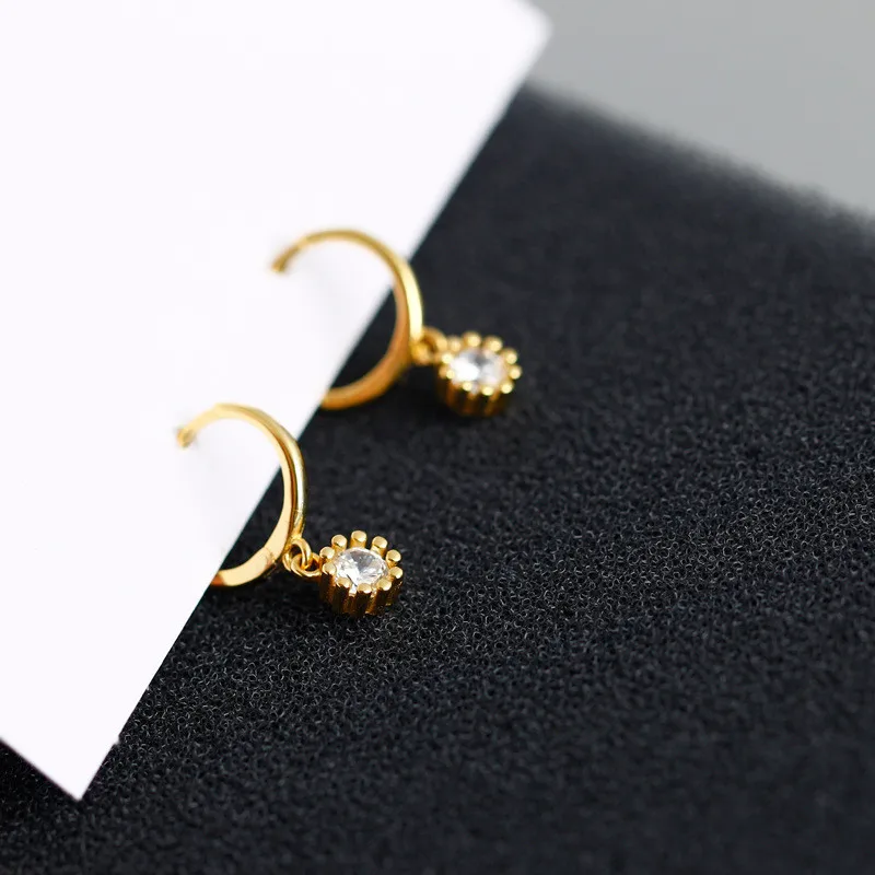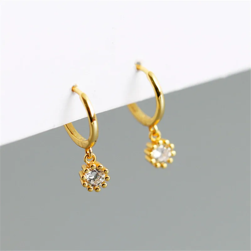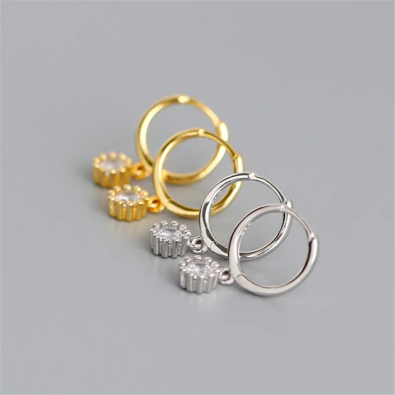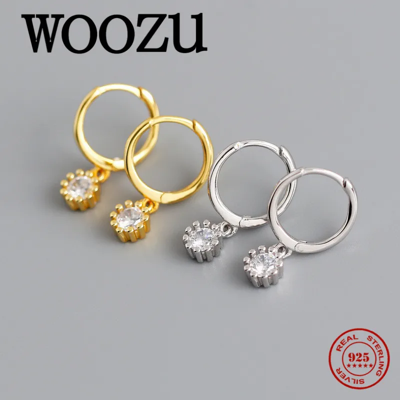 WOOZU реальные 925 стерлингового серебра минималистский паве циркон серьги с подвеской в виде цветка, очаровательные женские вечерние в винтажном стиле, на день рождения, ювелирные изделия в качестве подарка