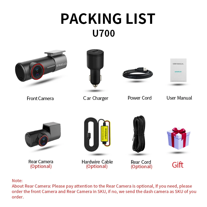 Видеорегистратор Sameuo U700, камера заднего вида с Wi-Fi, QHD 1440P, 2k, 24 часовым мониторингом парковки