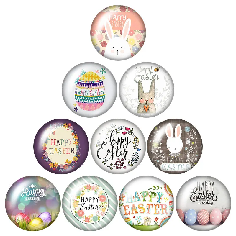 Милый кролик для фотосъемки Христос воскрес с пасхальными яйцами на пасхальную тему с изображением кролика и 18 мм кнопки 10 шт. круглые фото кабошоны разрисованные изделия из стекла стиль для кнопки ювелирные изделия