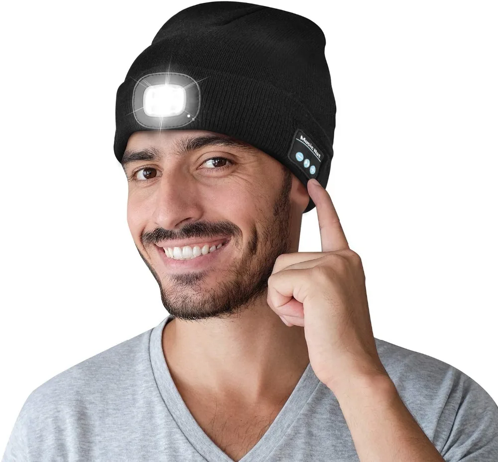 Шапка-бини унисекс, со светодиодный светкой, Bluetooth, беспроводная, бини с наушниками USB, с подсветкой, со встроенным стереозвуком HD