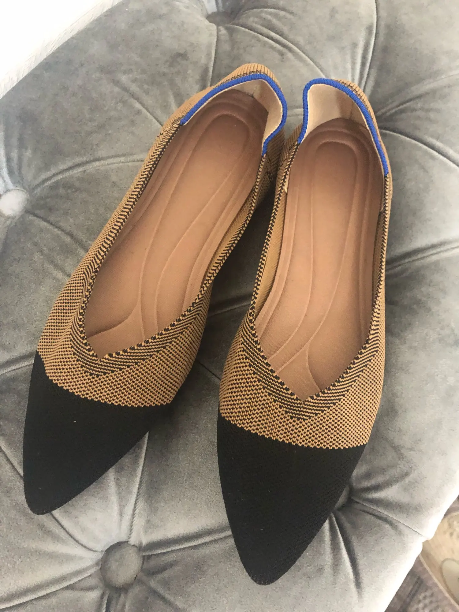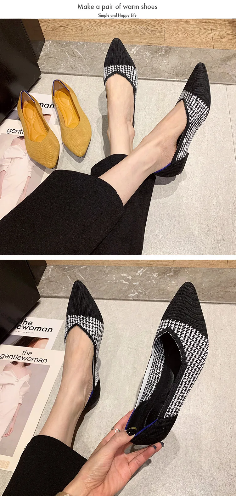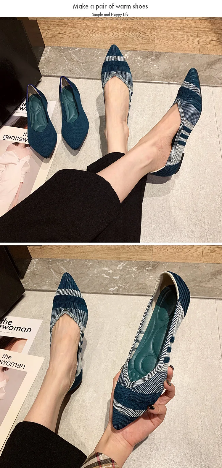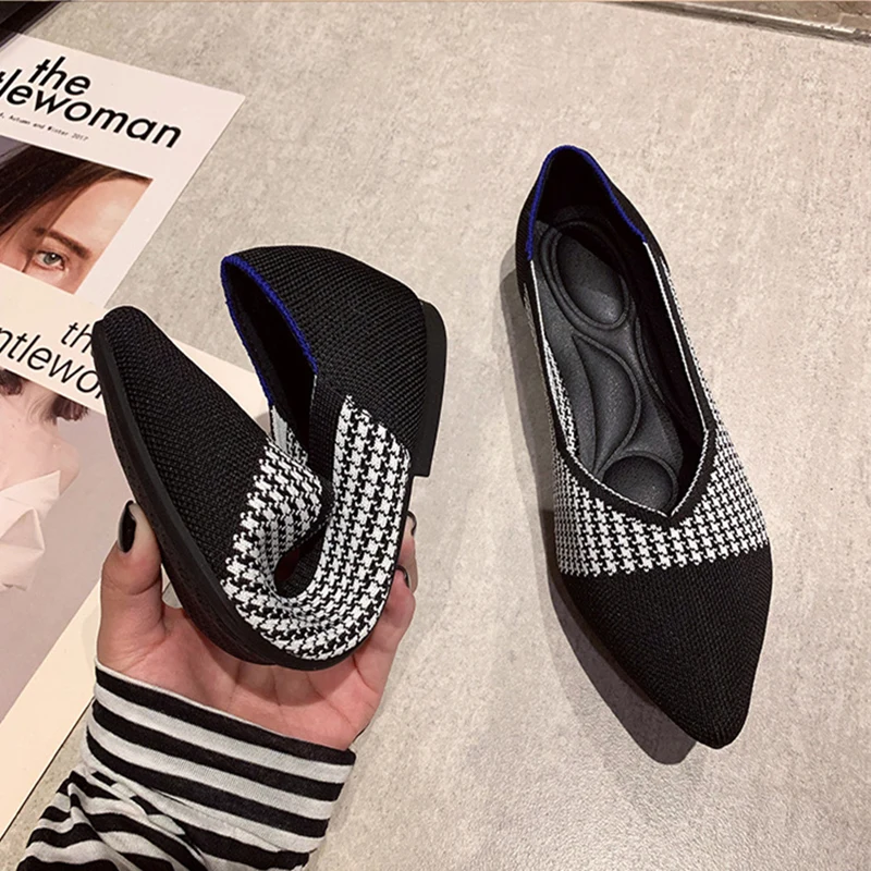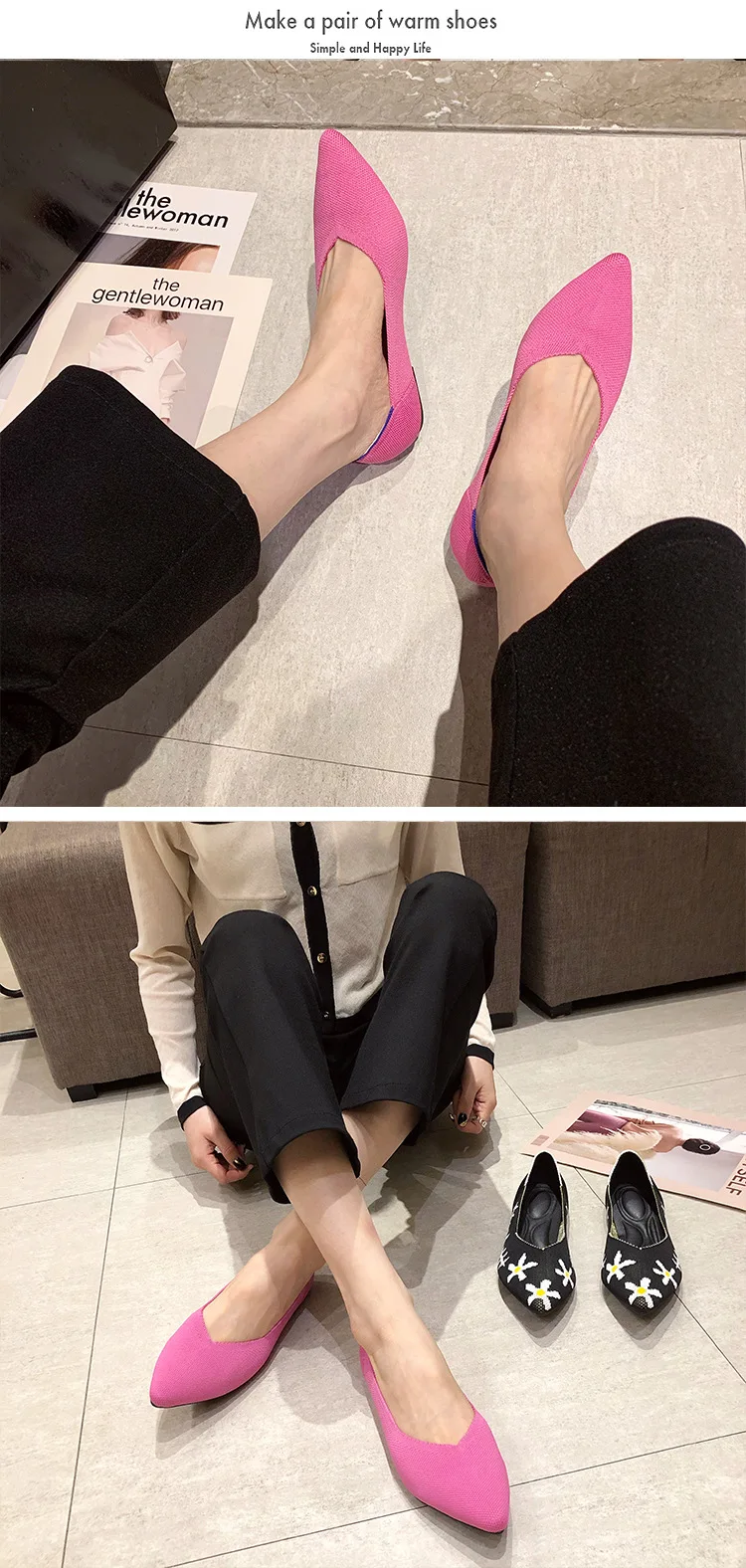 Новая цветная повседневная женская мягкая обувь; Дышащая вязаная обувь с острым носком; Женская обувь на плоской подошве; Тонкие балетки; Удобные туфли для беременных