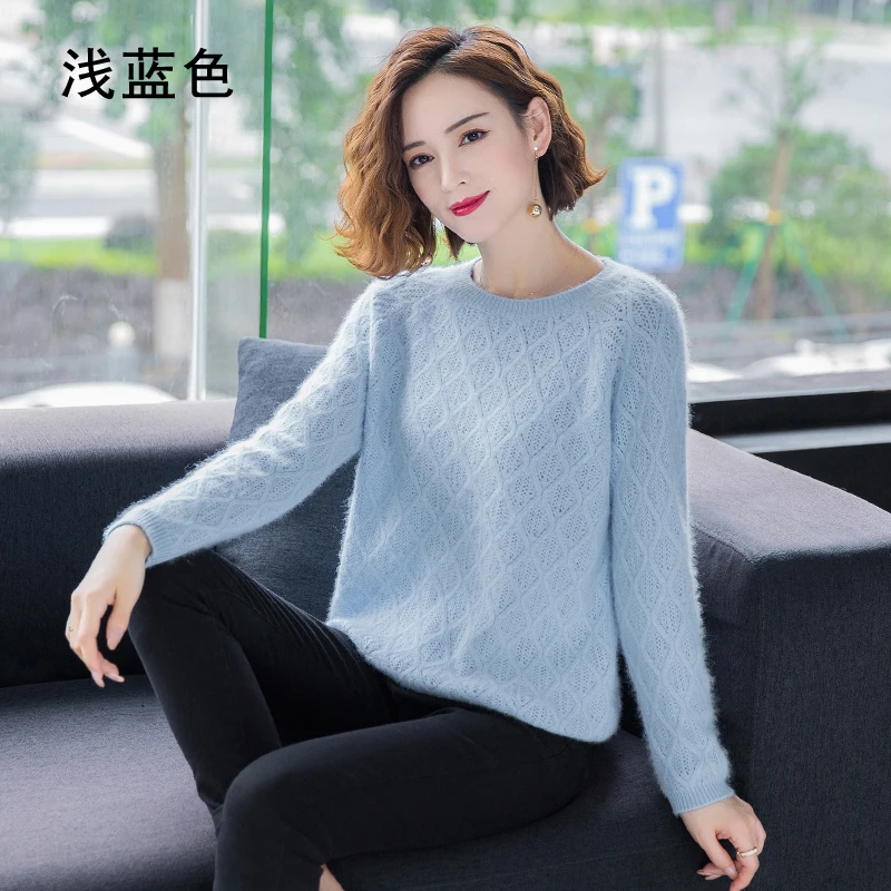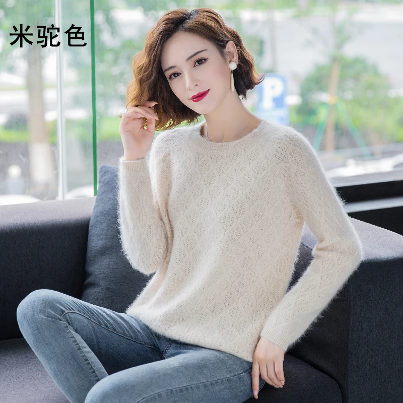 Пуловер женский, Осень-зима 2020, с круглым вырезом, 100%, свитер кашемир с норкой, мягкий, теплый, кашемировый, базовый, вязанные свитера для женщин