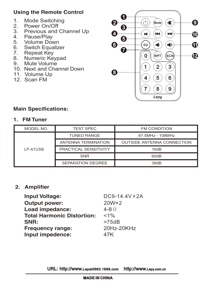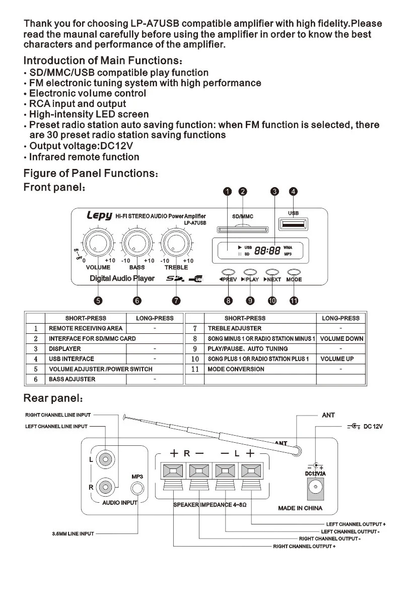 LP-A7USB Hi-Fi стерео аудио усилитель 2 канальный вертолет с USBSD Порты и разъёмы Дистанционное Управление Автомобильные усилители FM MP3 плеер