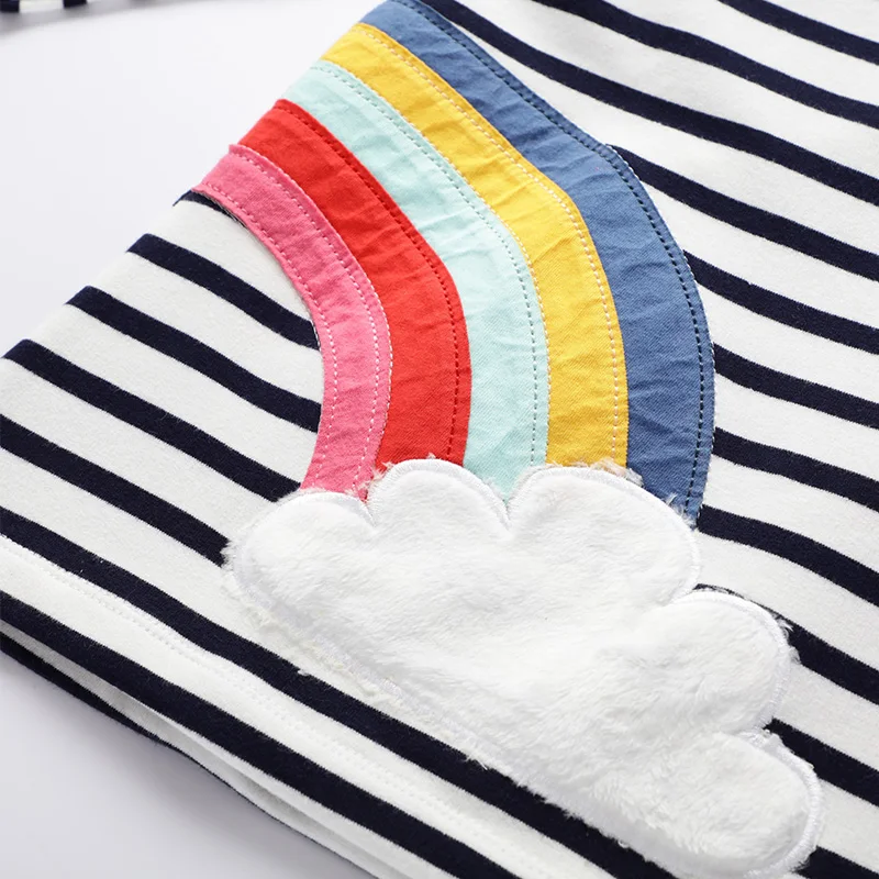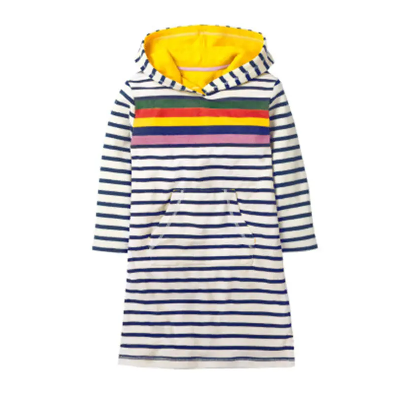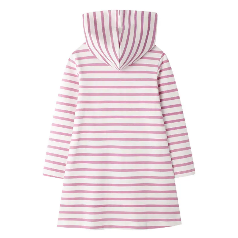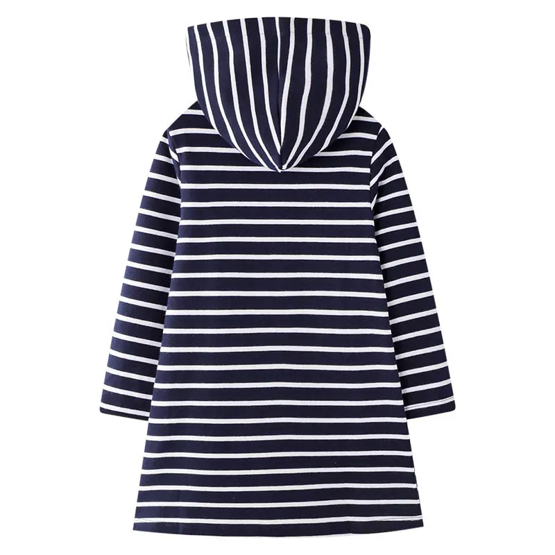 Платье с капюшоном для девочек, в полоску, со звездами и вышивкой