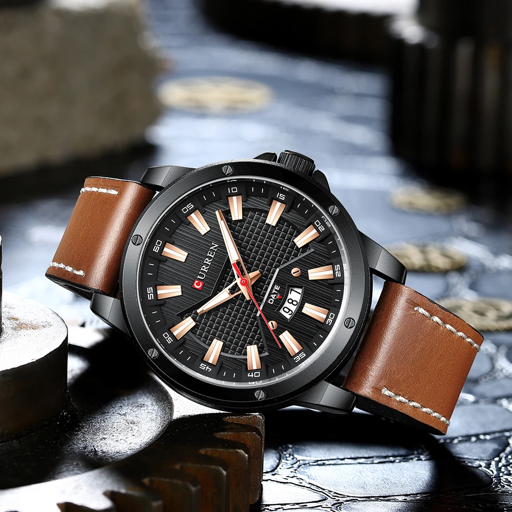 Мужские кварцевые часы Curren, деловые повседневные часы с кожаным ...