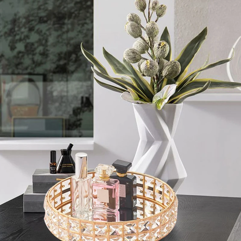Зеркальный поднос, искусственный косметический поднос, органайзер для украшений с хрустальными бусинами, декоративный поднос, домашний декор, комод, хранение для ухода за кожей