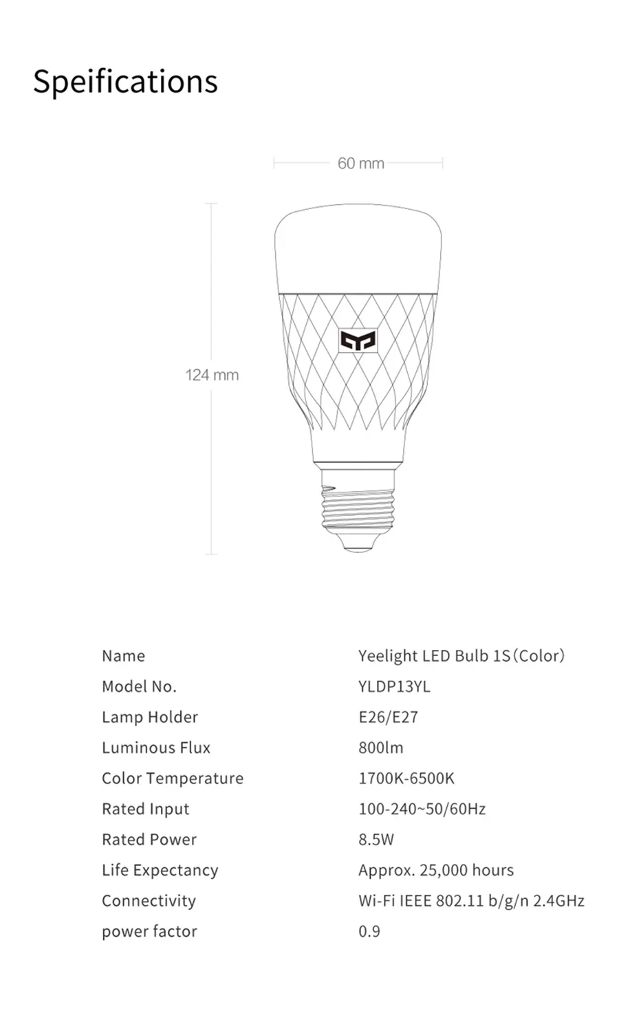 Умная Светодиодная лампа Xiaomi Yeelight, 1s, яркая, 800 лм, 10 Вт, E27, лимонная умная лампа, для приложения для умного дома, цвет белыйRGB