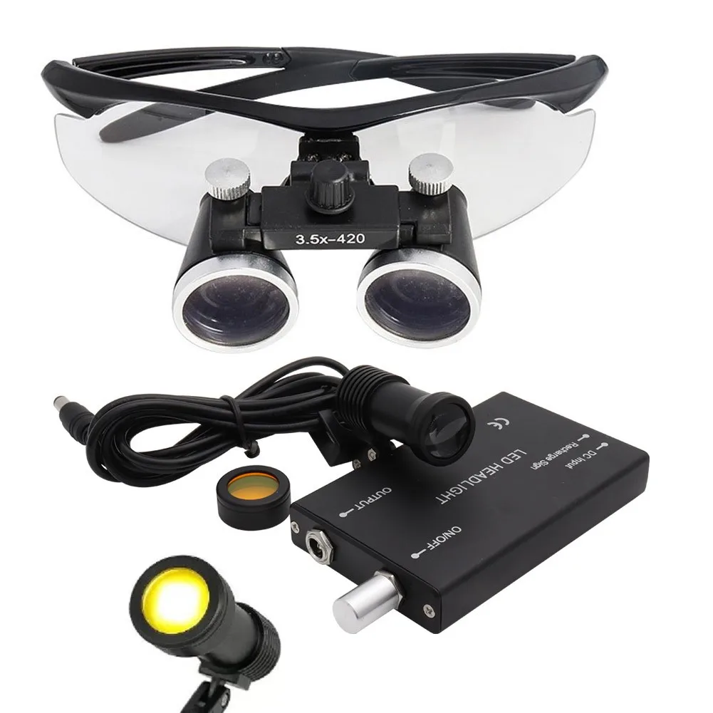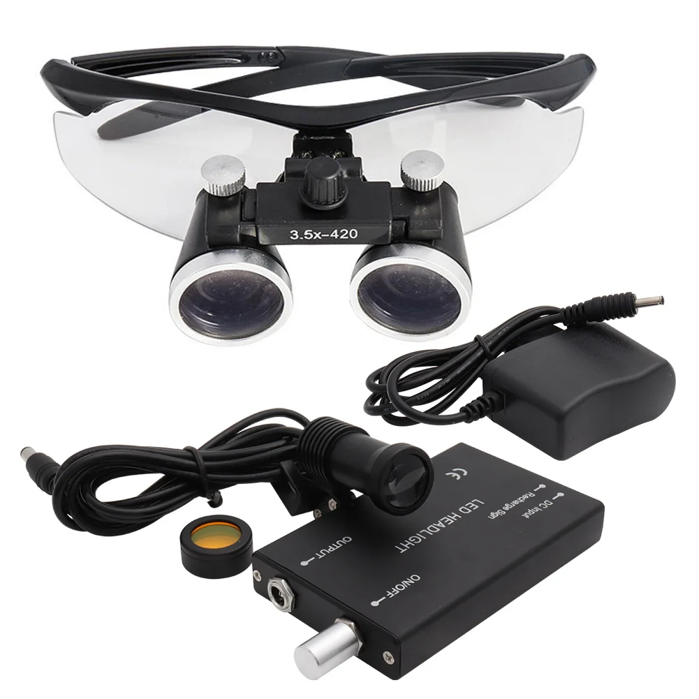 Стоматологические лупы 2,53,5x420, стоматологические медицинские лупы, увеличительный бинокулярный 3 Вт5 Вт, налобный фонарь, металлическая коробка