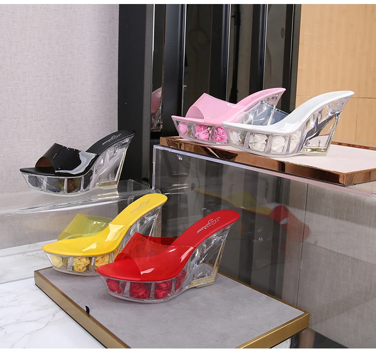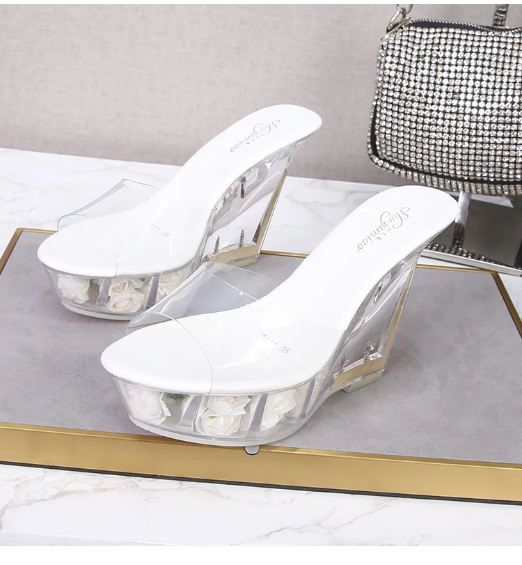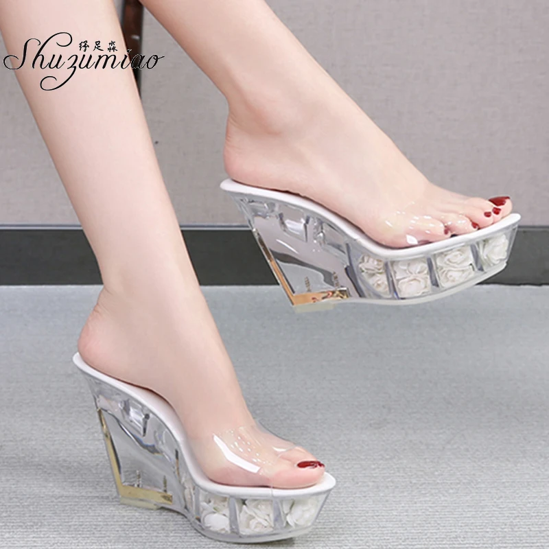 Женские сандалии на танкетке shuuilao, босоножки на высокой платформе 10,5 см, с кристаллами, с лепестками, на лето