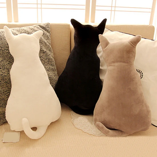 Плюшевые подушки в форме кошки, подушка для спины, черный, серый цвет, удобная подушка в форме кошки, наполненная животным, подушка для детей, подарок, игрушки