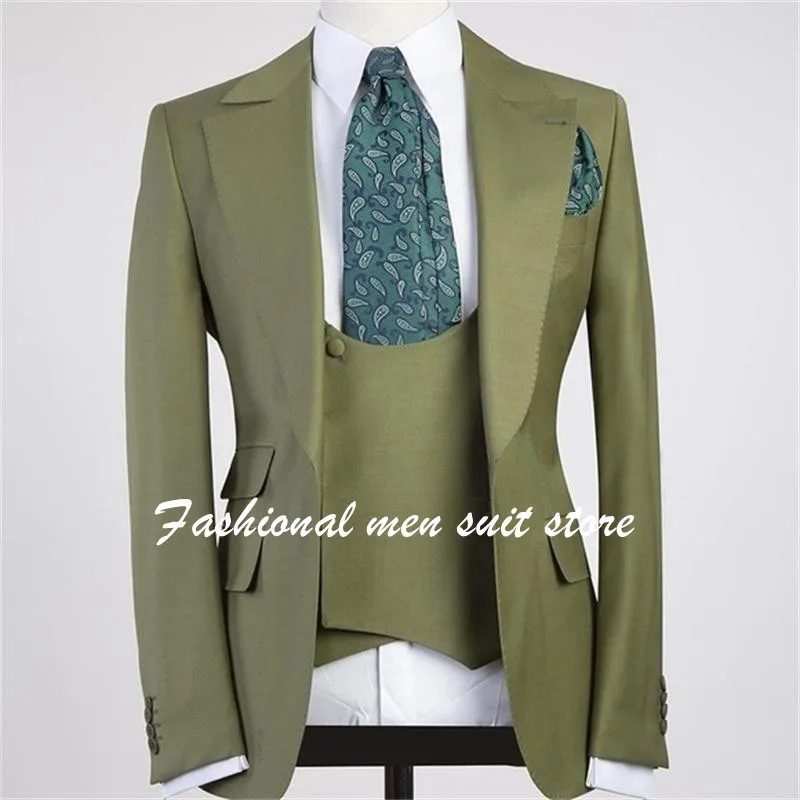 Новейший дизайн, мужские костюмы с зеленым лацканом с одной пуговицей, 3 предмета, мужской свадебный блейзер для жениха