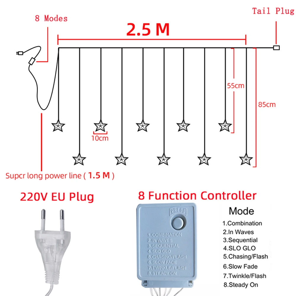 Светодиодный индикатор Количество:Светодиодный светильник с 10 звездами