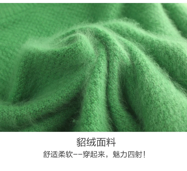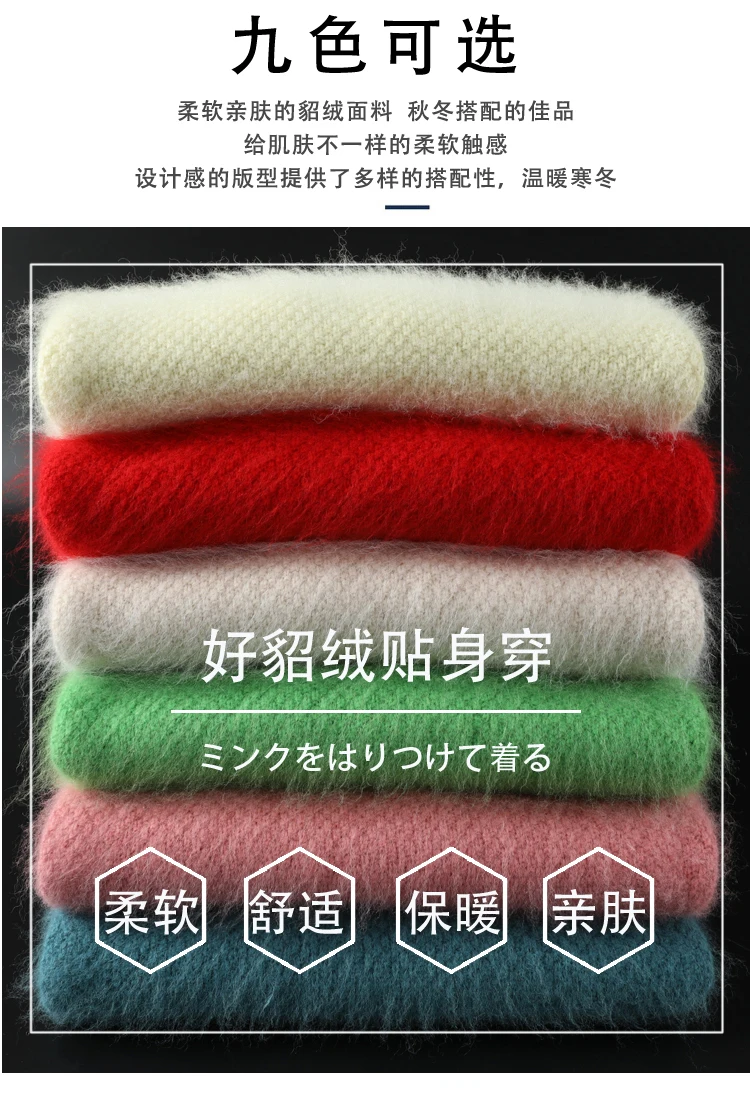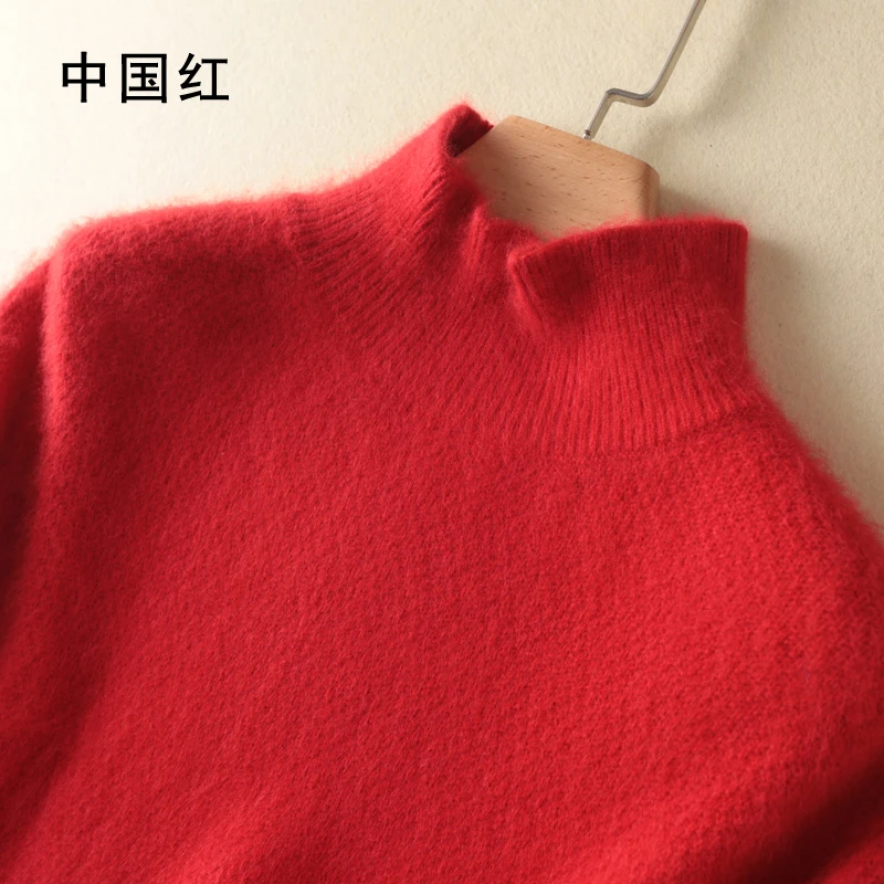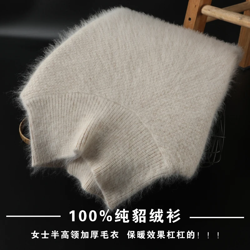 Женский вязаный свитер с длинным рукавом, Однотонный свитер из 100% норки, с высоким воротником, Осень-зима