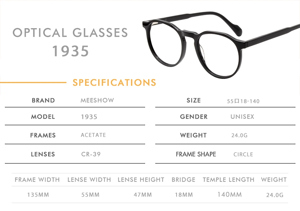Meeshow ацетат Твердые унисекс круглые прозрачные оправы для очков оптическая близорукость дальнозоркость очки по рецепту круглые очки 1935