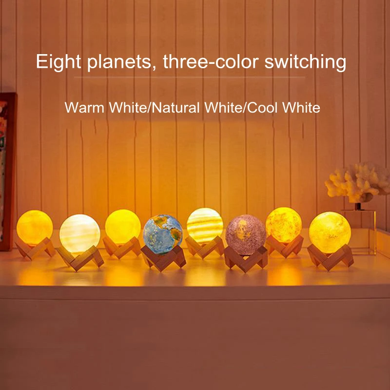 Креативный перезаряжаемый светильник с 3D-принтом в виде восьми планет, ночник, 3 цвета, домашний декор, романтический подарок