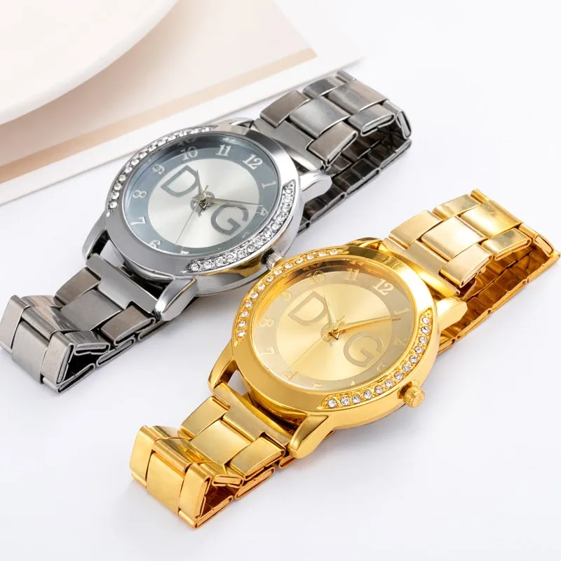 DG бренд 2020 Европейский поп стиль женские Роскошные Алмазные часы из нержавеющей стали Кварцевые женские часы Женские повседневные деловые часы