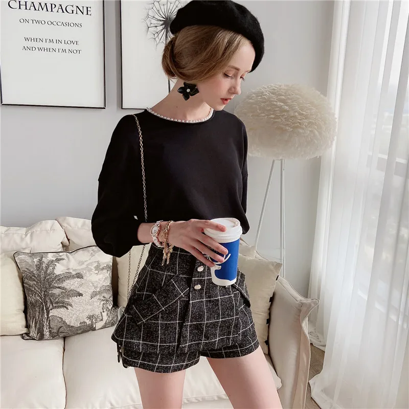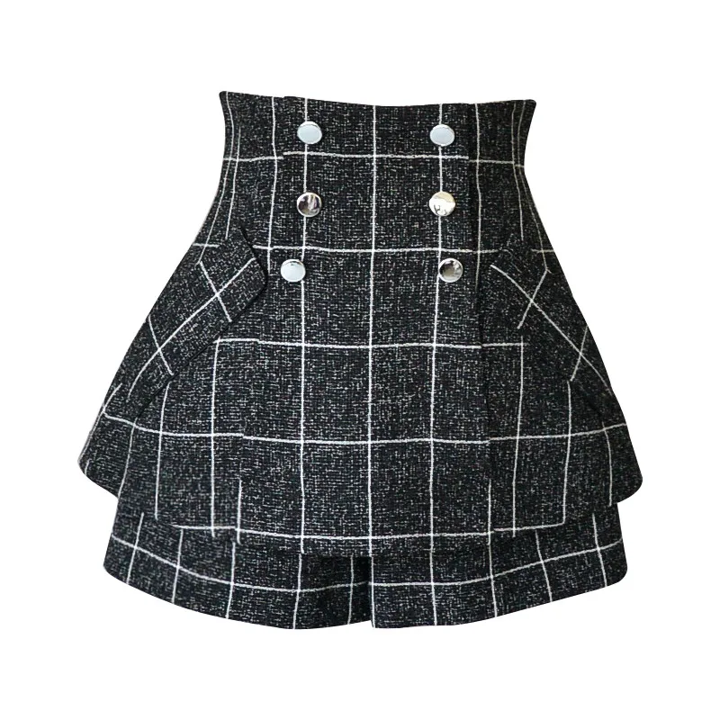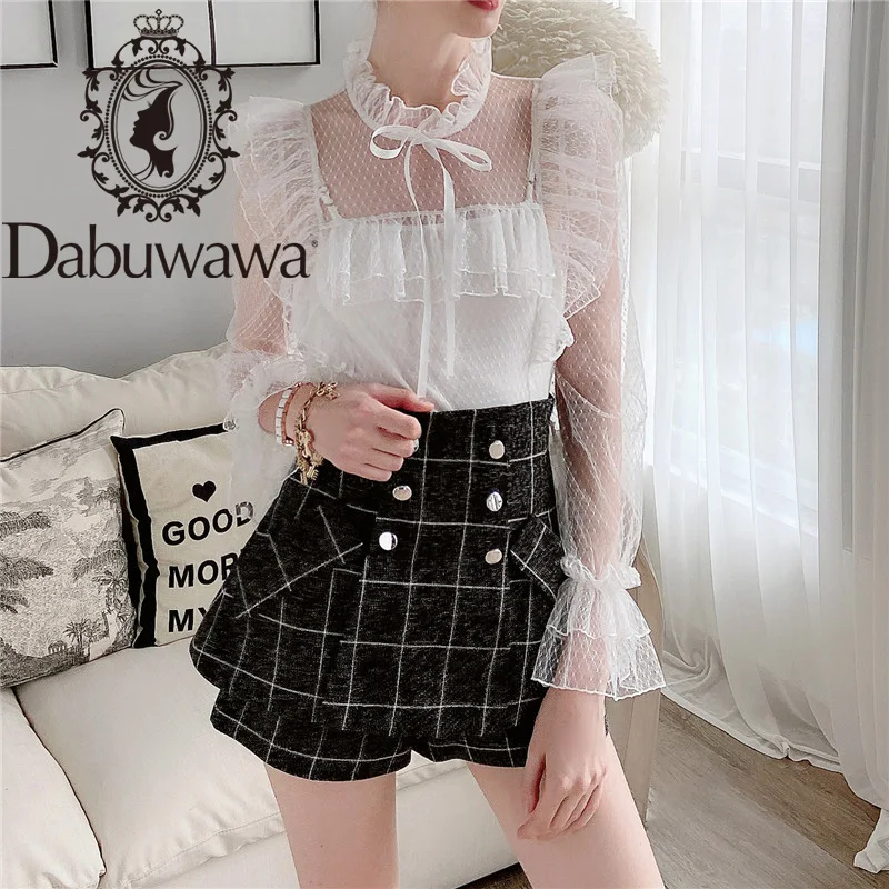 Женские винтажные клетчатые шорты Dabuwawa, двубортные повседневные облегающие двухслойные шорты с завышенной талией, D17CQK002, на осень