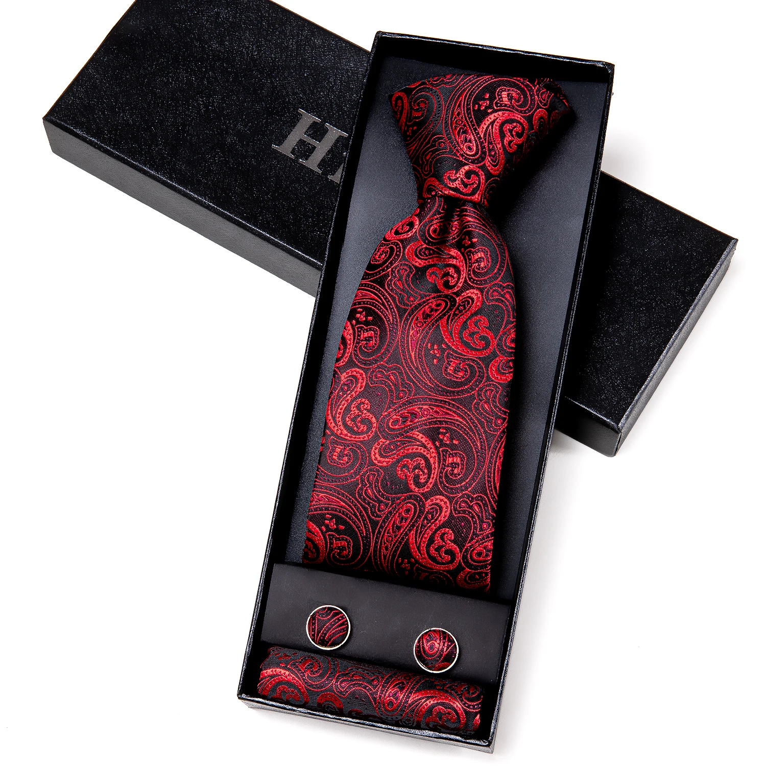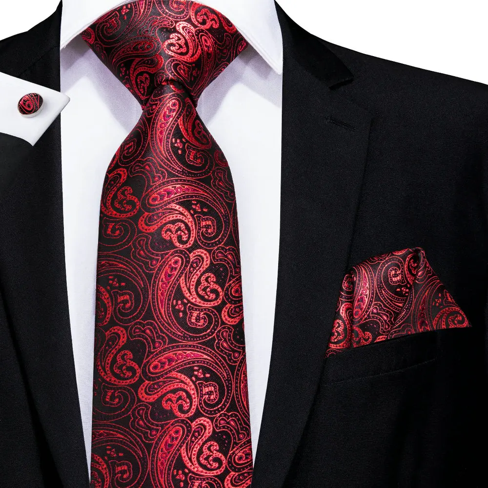 Привет галстук красный Пейсли галстук для мужчин Классический роскошный мужской галстук Шелковый большой свадебный подарок для мужчин Hanky запонки набор Высокое качество