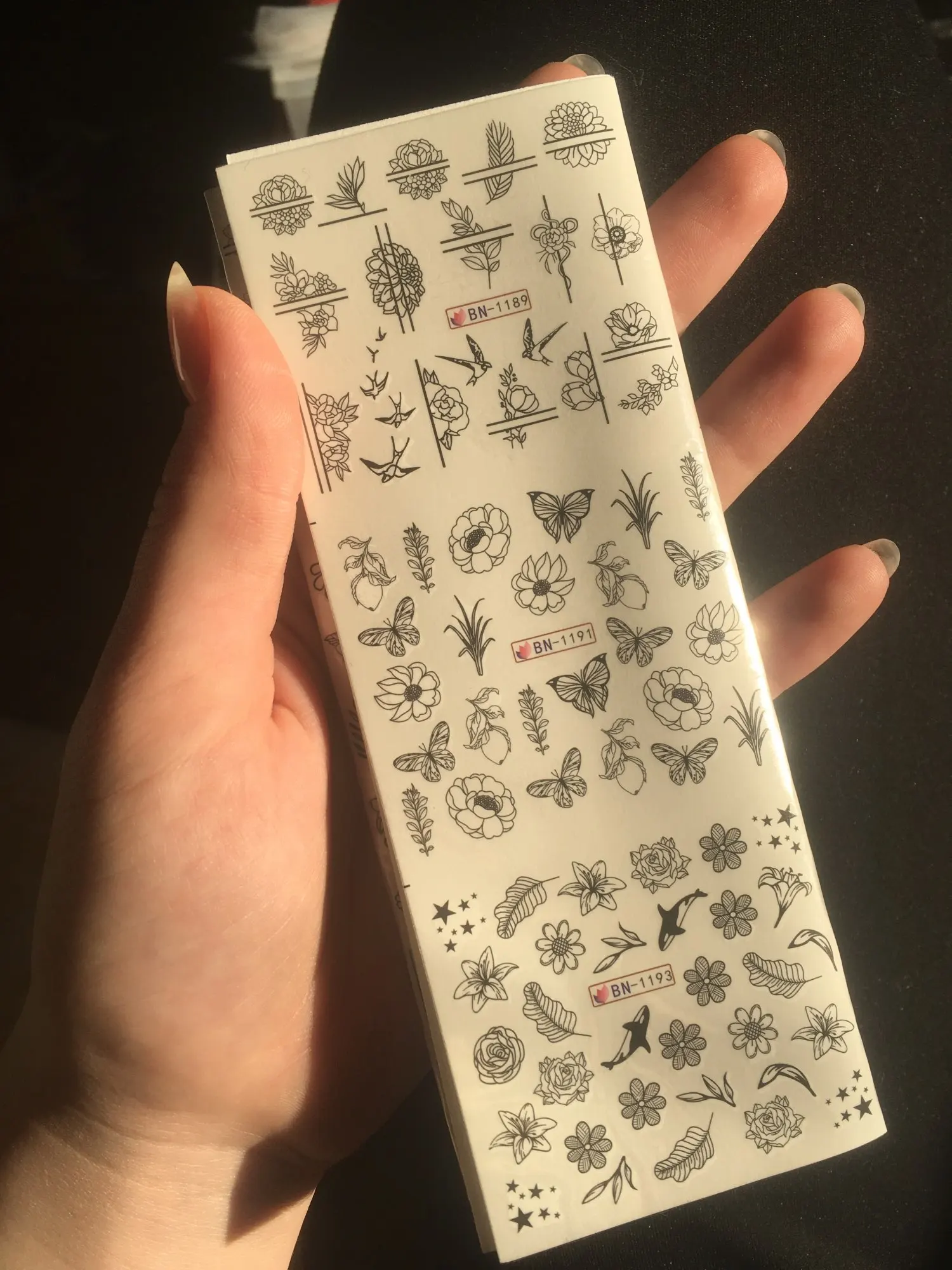 Наклейки пришли через 1,5 месяца. Рисунки четкие, некоторые большие, только на большие пальцы или разделять на несколько частей. Сначала расстроилась, что белые наклейки не пропечатались. Решила сначала попробовать) И все получилось, просто белый цвет не видно на подложке. Это не наклейки - водный слайдер: Вырезать нужный сегмент снять верхнюю плёнку положить на влажный ватный диск/салфетку провести пальцем и снять пленку с рисунком выложить на непросушенную базу/топ закрепить сверху топом
